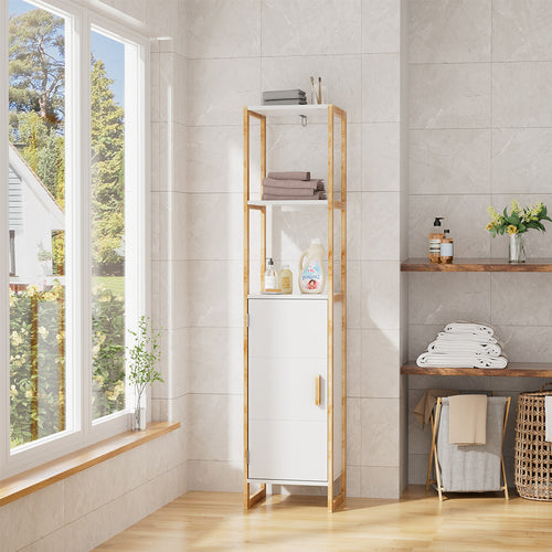 33x30x148cm 4-Tier Single-door Tall Bathroom Storage Cabinet with L-shaped Corner Brace