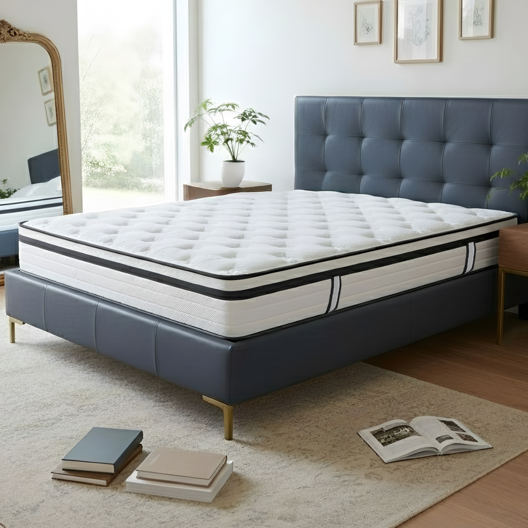Enjoy a comfortable sleep starting with this mattress. Meticulously designed, it combines beauty and durability. The finely stitched top pattern and high-quality fire-resistant fabric surface ensure a soft touch while providing enhanced safety. Inside, multiple layers of foam, cotton and individually wrapped pocket springs offer excellent support, alleviating back pain and delivering a relaxing sleeping experience. Additionally, the symmetrical structure and reinforced edge support ensure overall stability, prevent edge collapse, and extend the service life. Let us welcome each new day full of vitality together.