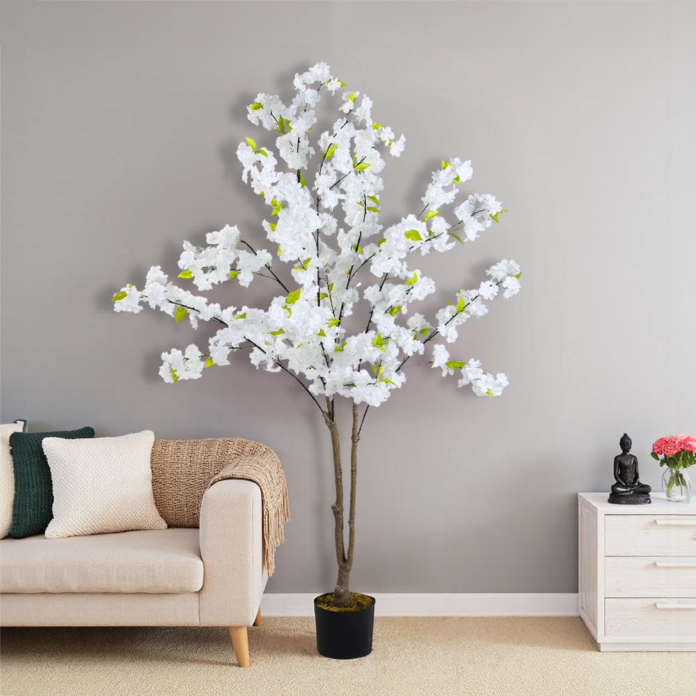 Add a splash of vibrant greenery and natural beauty to your home or office space. This artificial cherry blossom tree, with its delicate texture and unique spiral-shaped trunk, perfectly captures the charm of a real cherry blossom tree, making it an ideal choice for enhancing your space. The tree boasts white petals that are delicately stunning, and green leaves that are lush and vibrant, with every leaf and petal rendered lifelike, as if transporting you into a real garden. The dense foliage and bright blossoms complement each other, forming a picturesque scene. Whether placed in the living room, office, or dining room, it will undoubtedly become an eye-catching attraction.