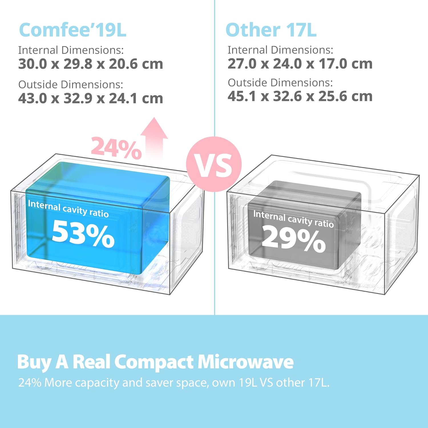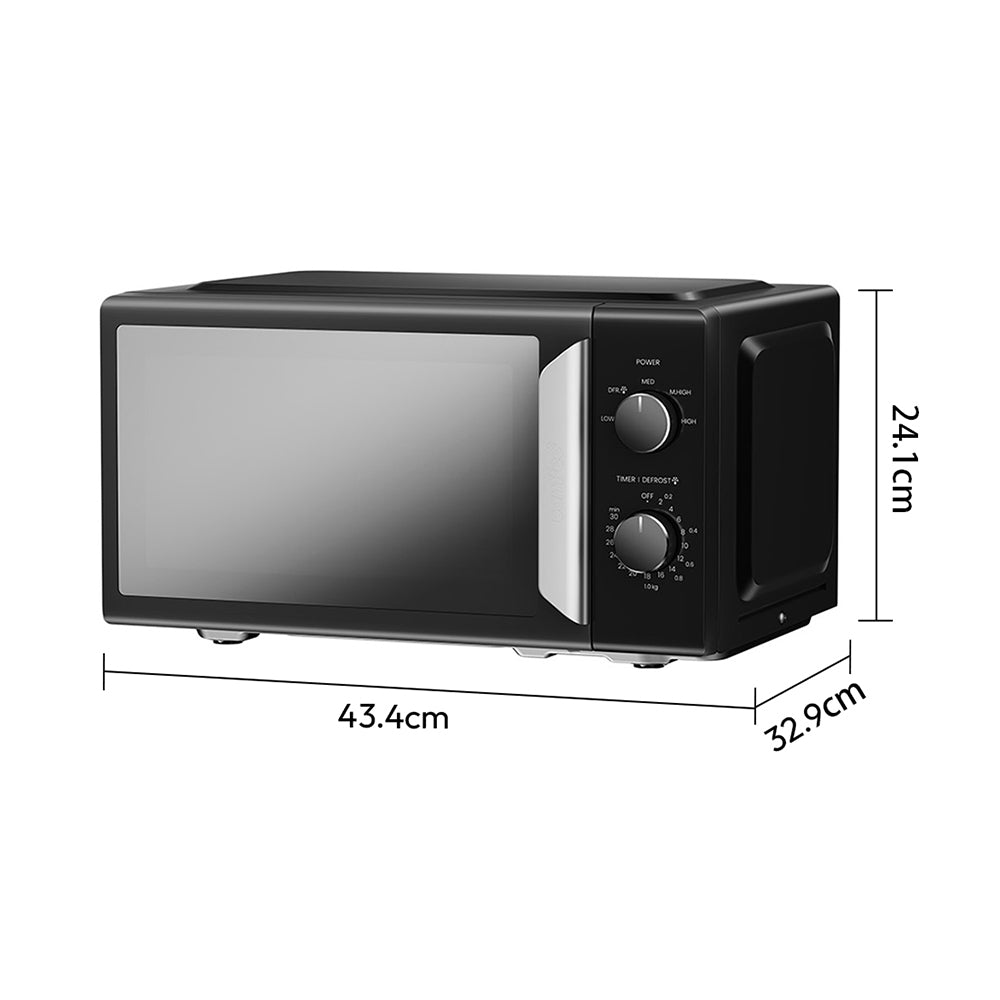 This 19L countertop microwave makes cooking and reheating food simple, quick, and convenient. The user-friendly mechanical control knobs let you set a timer from 1 to 30 minutes and choose from five cooking power levels. Its lightweight and compact design is perfect for anyone living in small spaces like dorms or apartments, effectively minimising excessive space usage and providing an ideal solution for quickly preparing delicious meals.