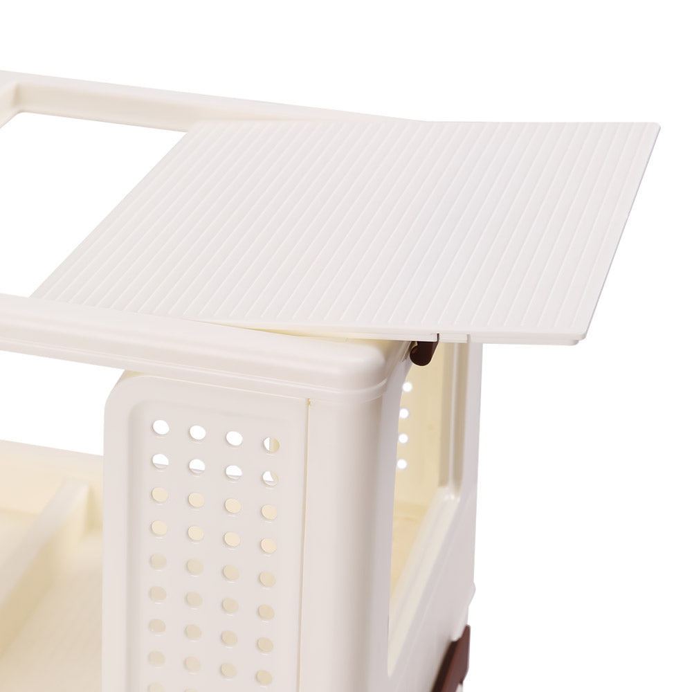 Don't let your space be overwhelmed by daily clutter. Use this cart to start a neat and orderly life. It offers open storage space and baffles with small holes to prevent items from falling out, making it ideal for organizing a variety of items such as children's products, toys, snacks, and more. With its practical design and ample storage space, this cart is perfect for organizing various items and keeping your living area tidy.