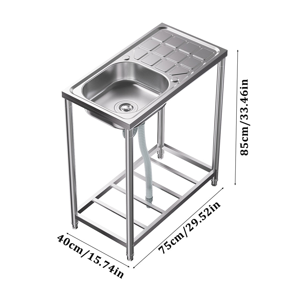 Discover the versatility of this commercial sink, designed with ample space to effortlessly handle the washing of fruits, vegetables, and dishes. Perfect for home kitchens, restaurants, and outdoor kitchens, it adapts seamlessly to a variety of environments. Crafted from durable stainless steel, it offers exceptional resistance to scuffs and impacts while maintaining food-safe standards. The drainboard on the right side provides extra space to dry everything from cutlery and plates to pots and pans, enhancing its practicality. Plus, its movable design and hassle-free installation further enhance its practicality, making it an outstanding addition to any kitchen space.