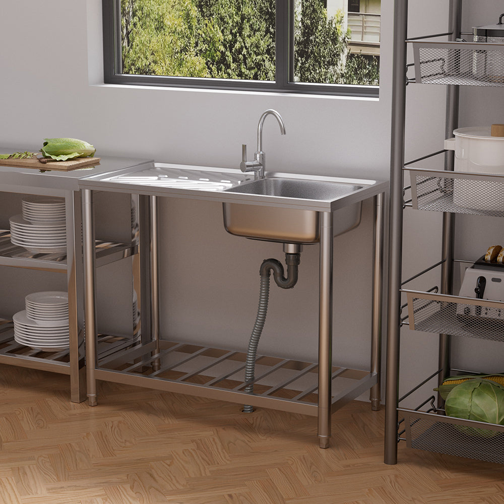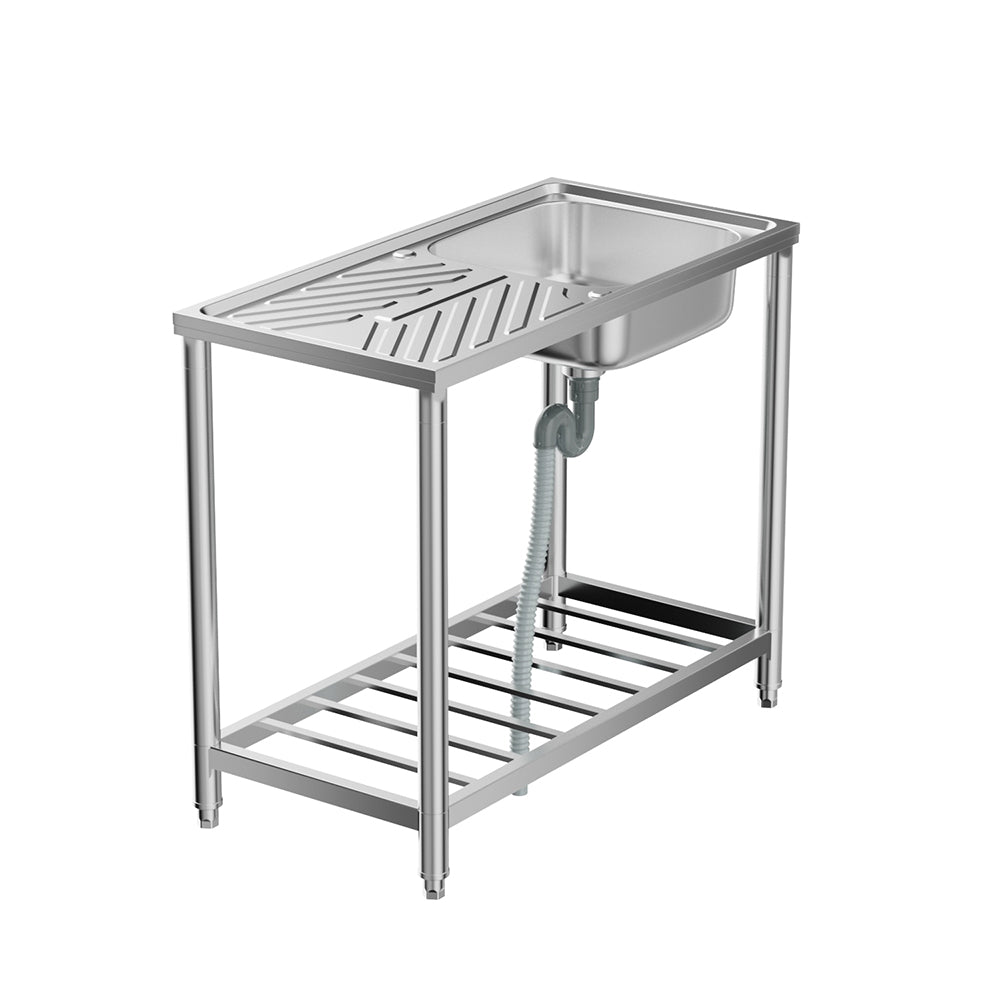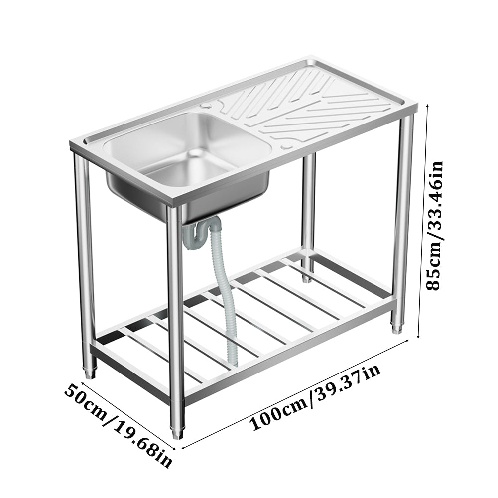 Discover the versatility of this commercial sink, designed with ample space to effortlessly handle the washing of fruits, vegetables, and dishes. Perfect for home kitchens, restaurants, and outdoor kitchens, it adapts seamlessly to a variety of environments. Crafted from durable stainless steel, it offers exceptional resistance to scuffs and impacts while maintaining food-safe standards. The drainboard on the right side provides extra space to dry everything from cutlery and plates to pots and pans, enhancing its practicality. Plus, its movable design and hassle-free installation further enhance its practicality, making it an outstanding addition to any kitchen space.