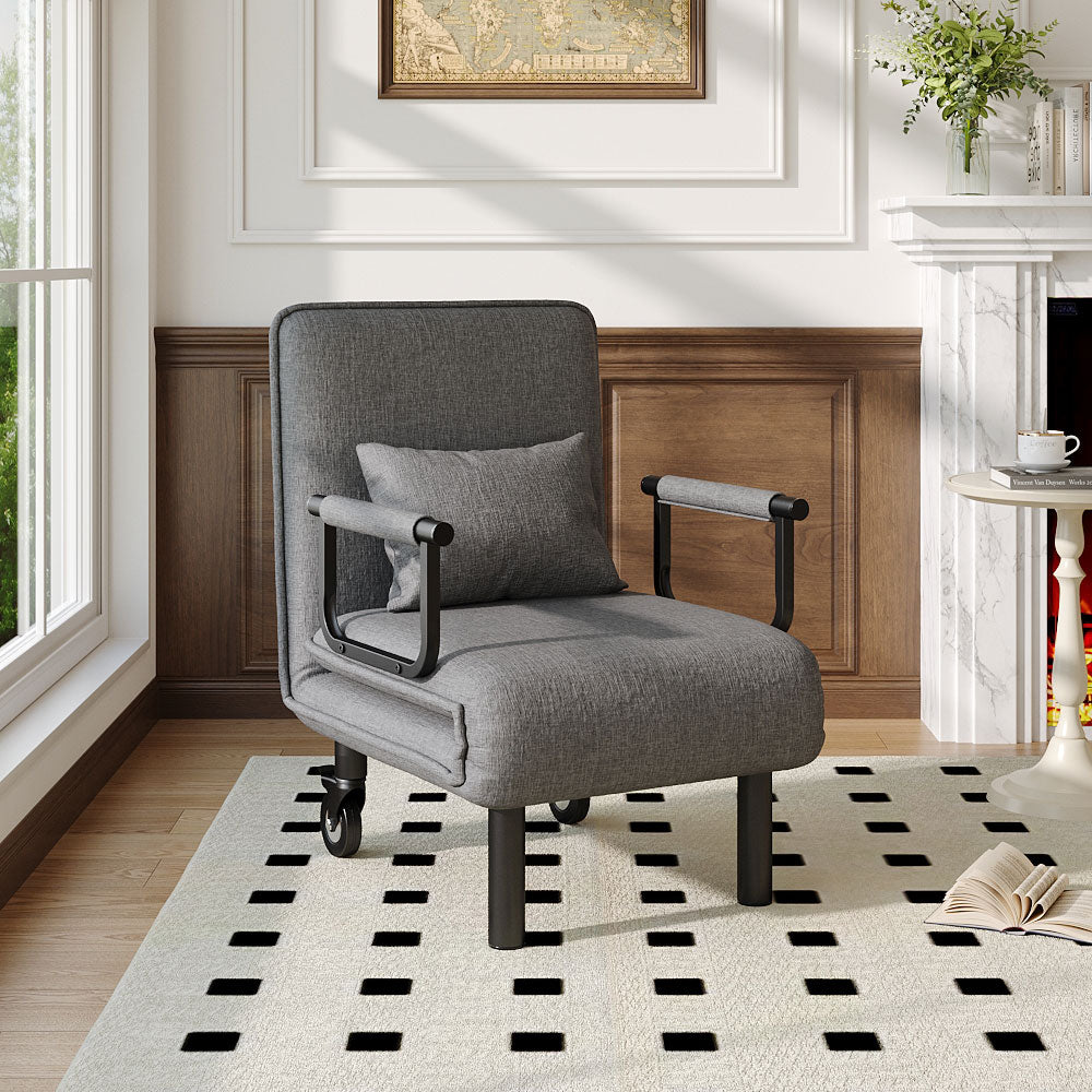 The 3-in-1 Sofa Bed offers the ultimate relaxation experience, allowing you to unwind in multiple positions without ever leaving the comfort of your home. Designed with versatility in mind, it includes a supportive cushion that provides lumbar support and can also function as a sleeping pillow. Upholstered in breathable linen, it delivers an ideal balance of comfort and functionality. Whether used as an armchair, recliner, or bed, this sofa bed is the perfect addition to any living space.