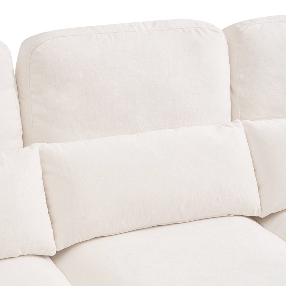 Bring a sense of style to your living space! Exquisite textured fabric ensures a soft and welcoming feel, perfect for creating a warm, relaxing atmosphere during cosy evenings. Generously filled cushions and a supportive backrest offer exceptional comfort, even during extended use. Marvel at its clean lines and elegant colour palette, bringing modern sophistication to any room. Complete with three decorative accent pillows, adding lumbar support as well as practical functionality and style.