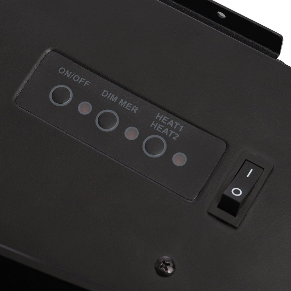 - The digital remote control includes 3 buttons for different effects including on/off, heat settings and dimmer