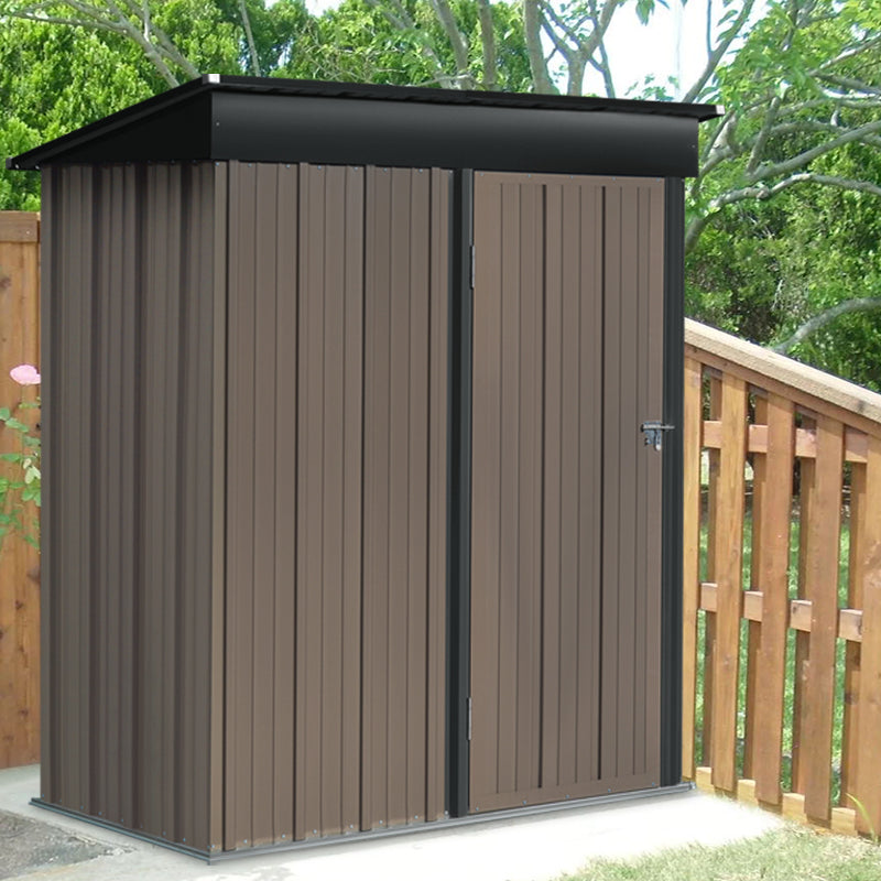 Maximise your outdoor space with this stylish metal garden storage shed. Inspired by rustic design, this shed features a brown and black finish that blends effortlessly into any garden. A durable frame ensures long-lasting use, offering protection against corrosion and deformation. The slanted roof not only enhances the modern aesthetic but also ensures efficient water drainage, preventing water build-up from rain or snow. An easy-to-open outward-opening door provides convenient access, while the generous height allows you to store gardening tools and seasonal items with ease. This compact shed delivers a practical, clutter-free solution for keeping your garden organised and your belongings protected.
