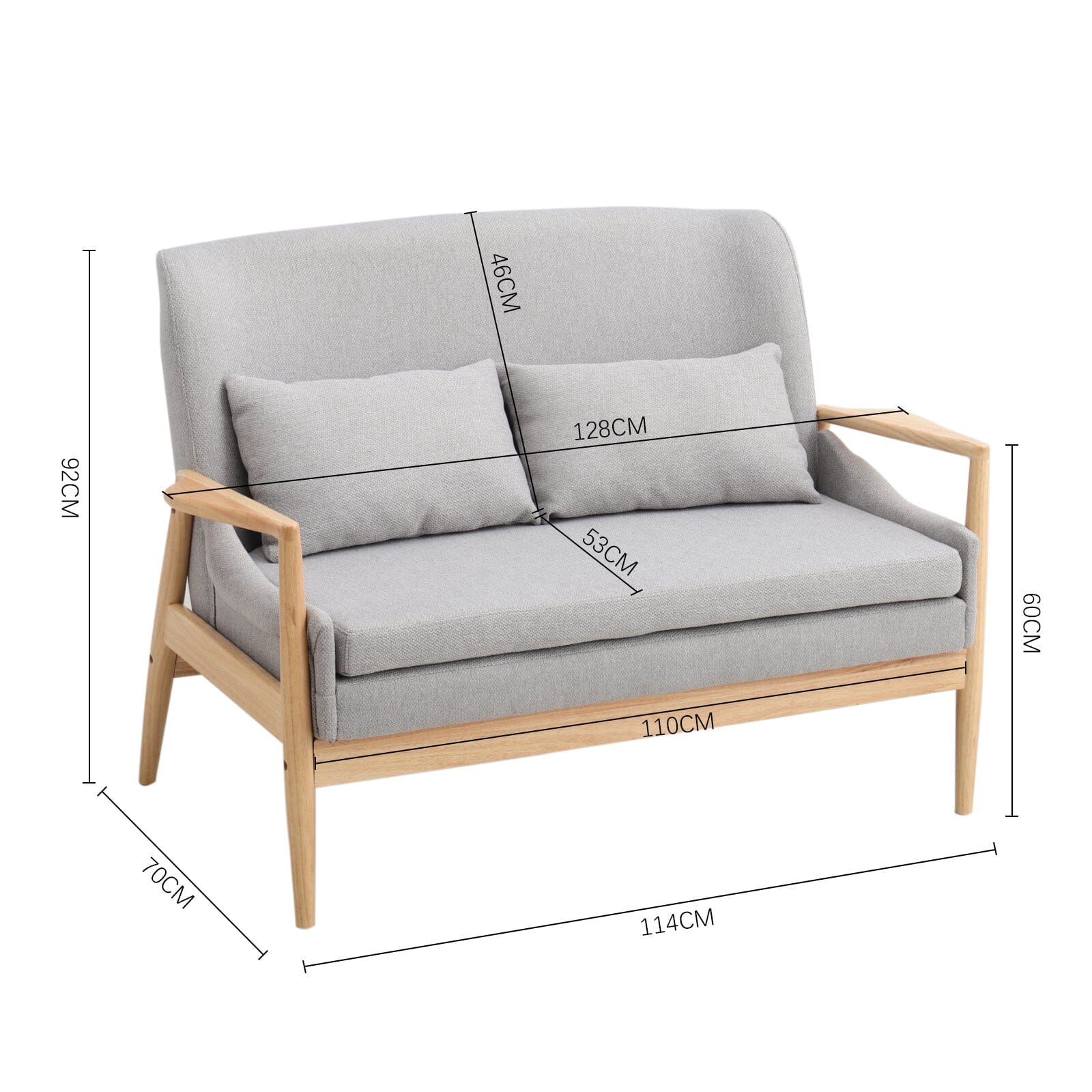 - Seat: W 110cm x D 53cm x H 46cm