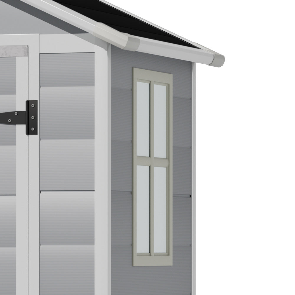 Introducing this practical and sophisticated tool shed, designed to make the most of every inch of space. The interior is spacious and carefully arranged to keep tools, gardening equipment and DIY materials in order and easily accessible at all times. The vent ensures optimal air circulation, preventing moisture and keeping your tools dry. Whether you are tending to your garden or tackling home repairs, this tool shed offers excellent functional support, helping you efficiently realize every creative project and enjoy a pleasant working time.