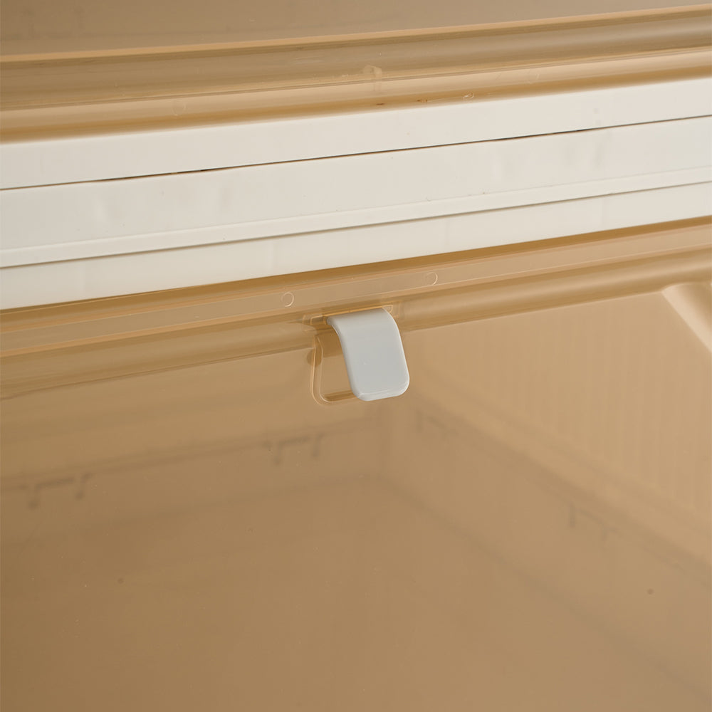 - [Side Latch System]: Integrated side latches securely lock stacked units together for added stability and prevent shifting.