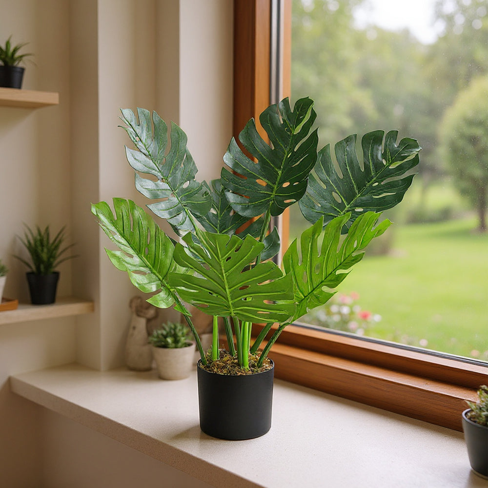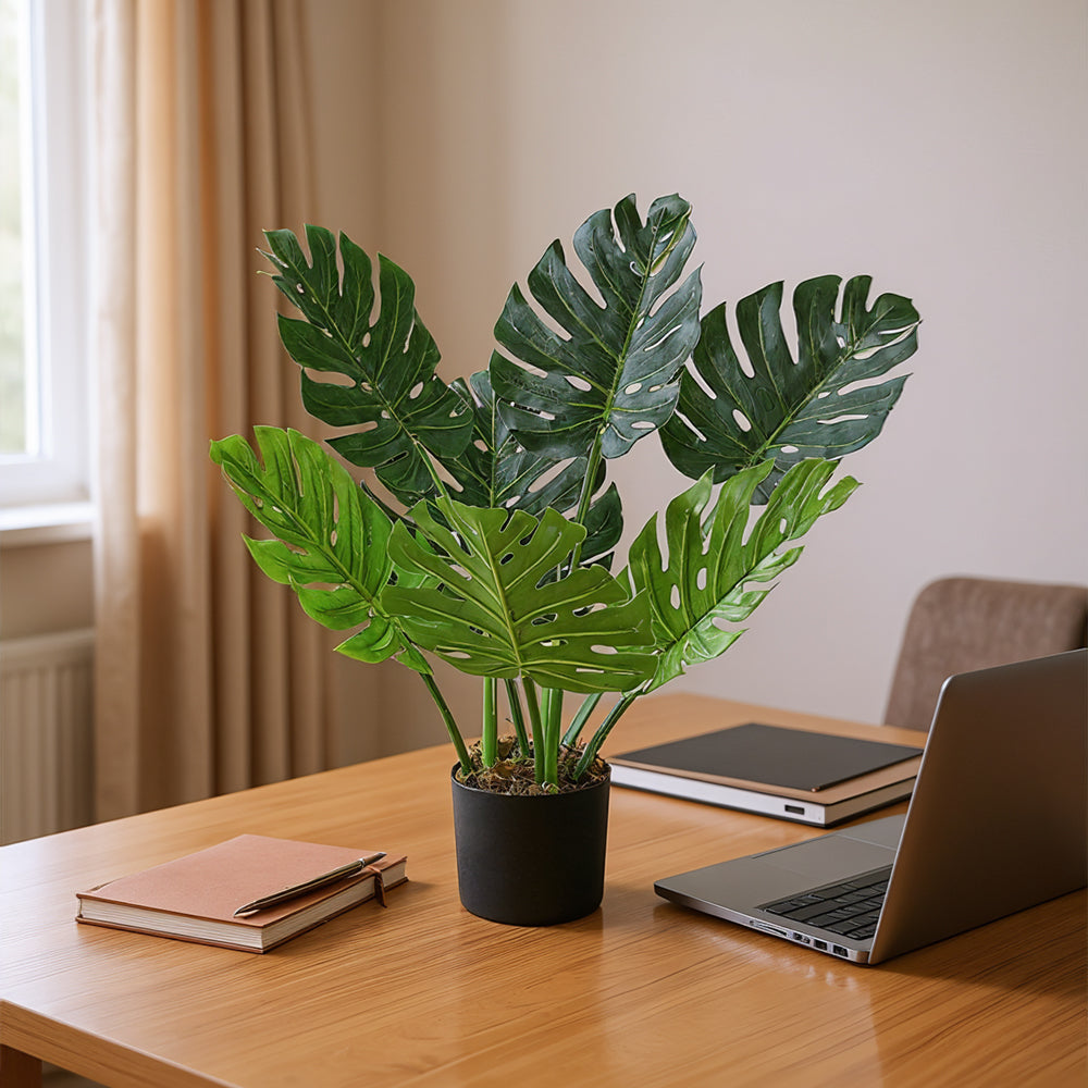Bring the tropics to your home or office with this lifelike artificial monstera plant. This faux monstera with superb detail is the perfect replacement for a real tree so that you don't have to worry about watering, cutting or applying fertilizer. Also, using this style of artwork can provide a sense of elegance and romance to rooms such as the bedroom, living room, or reading room. What's more, it's a great housewarming gift for friends and family!