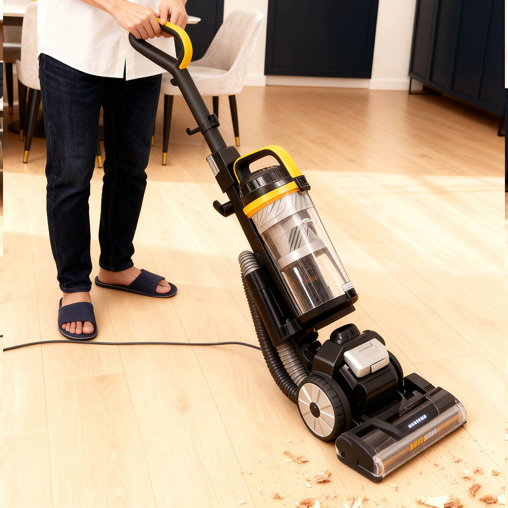 Experience efficient cleaning and convenient operation with the upright vacuum cleaner. The large 2.2L dust cup provides ample capacity to handle daily cleaning tasks without frequent emptying. Dual cyclone and dual motor technology ensure high-efficiency filtration and lasting performance, while the anti-tangle brush roller design makes cleaning easier. Featuring dual multi-surface brushes, it is designed to effectively lift dirt and debris from both carpets and hard floors. Ideal for busy households, this vacuum cleaner is your perfect partner for hassle-free cleaning.
