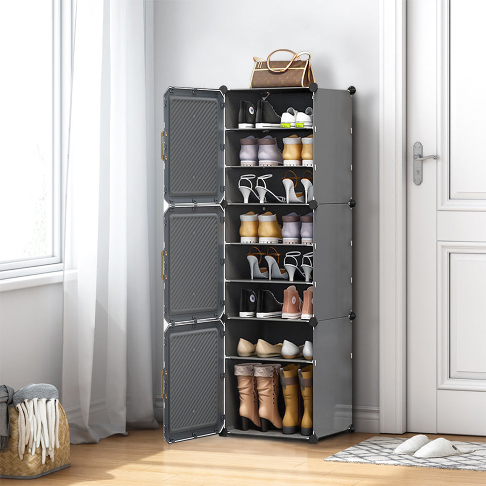 This sturdy shoe cabinet, made from durable PP material and reinforced with a strong wire frame, offers excellent load-bearing capacity. The removable shelves allow for flexible storage, accommodating shoes of various sizes. The spacious top platform serves as a perfect display for decor, enhancing the aesthetic of your home. The stylish diagonal-patterned door, with a convenient handle, adds both design flair and ease of use. A practical yet chic solution for home organization.