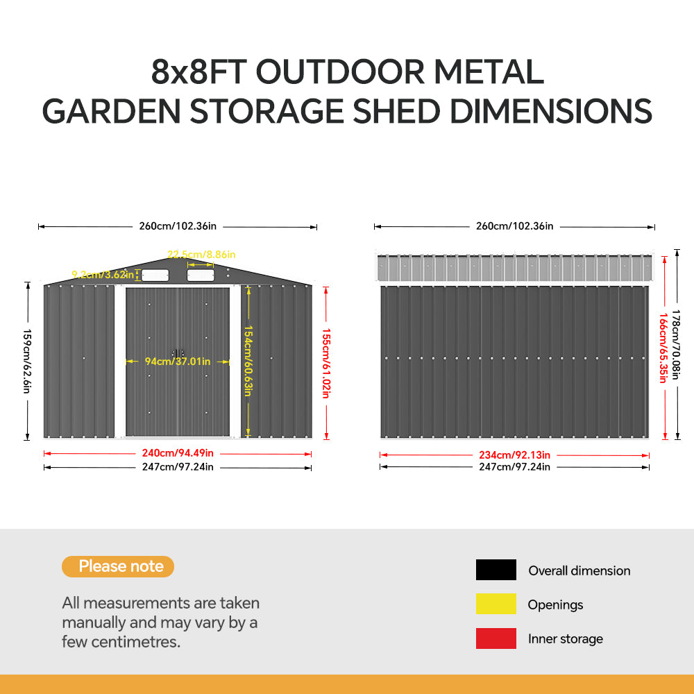 - [Easy to Access]: Equipped with a double-opening sliding door for smooth operation, enhancing the convenience of accessing the shed.