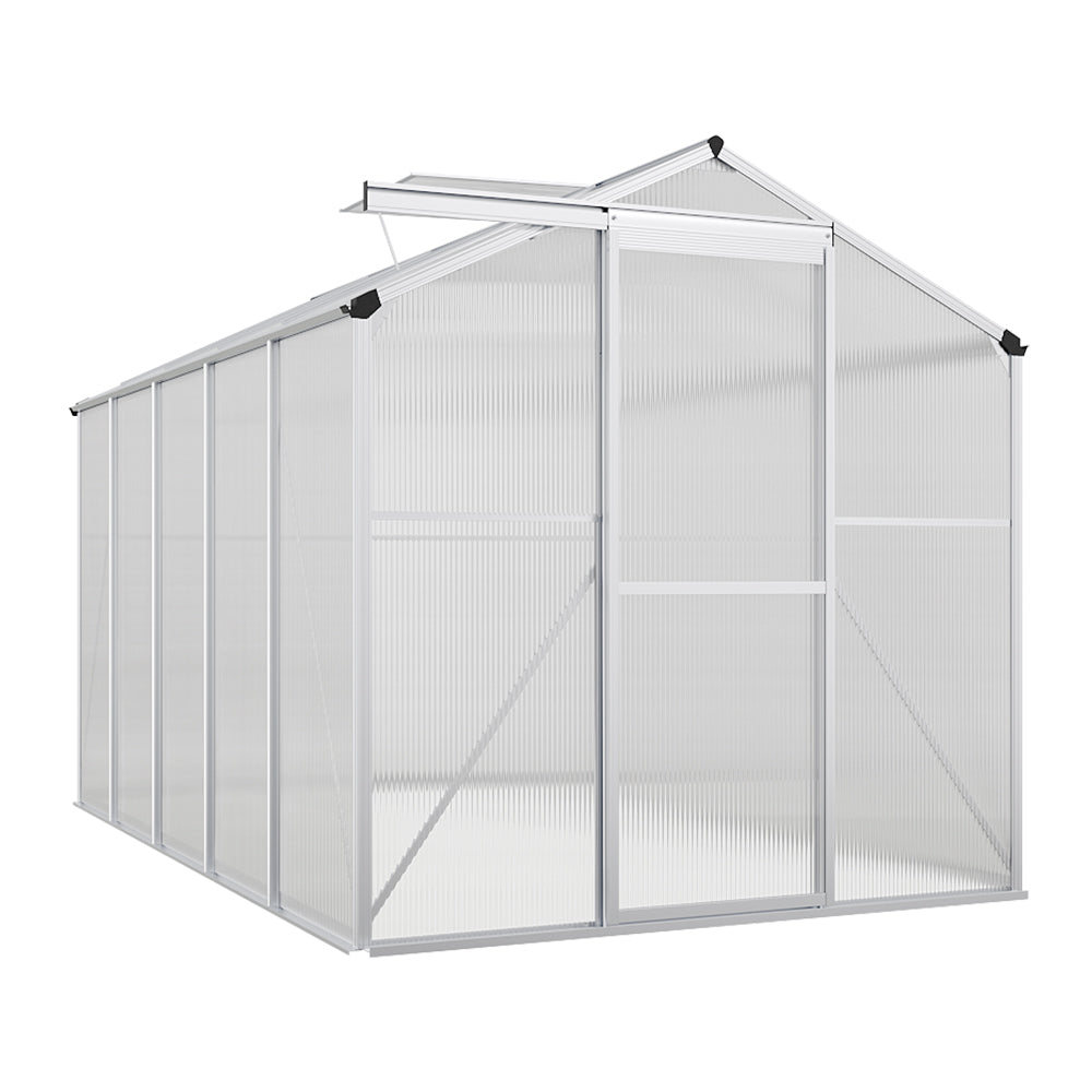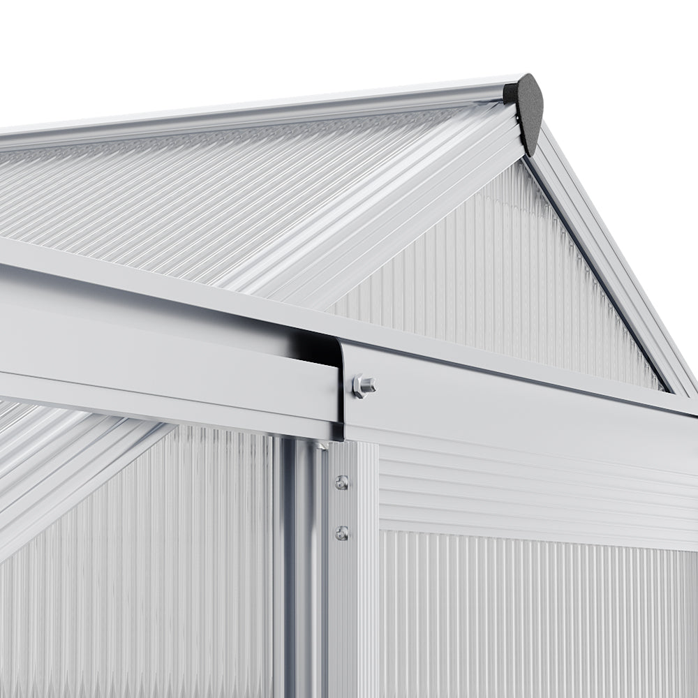 This frame of this practical greenhouse is built from superior aluminium, which lays the foundation of the upright and sturdy structure. The polycarbonate-made panels are semi-transparent, which allow you to check on the plants from time to time. To make sure that the inner environment is in the best condition, the greenhouse is paired with 2 window openings. An impressive greenhouse for a planting lover like you.