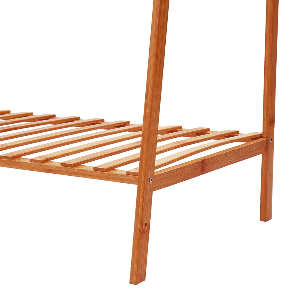 Got limited space to store your clothes? This Lifeideas garment rack is here to help. Equipped with a 5-tier side shelf, a hanging rod, 2 side hooks, top and bottom shelves, it is perfect for your coats, shirts, shoes and bags. The anti-toppling trapezoidal design and the natural bamboo material are the double guarantee of stability. With a natural and fresh look, this clothing rack easily matches your room decor.