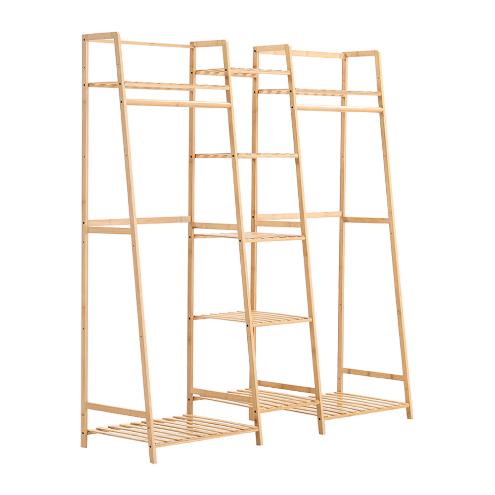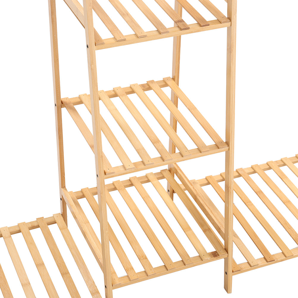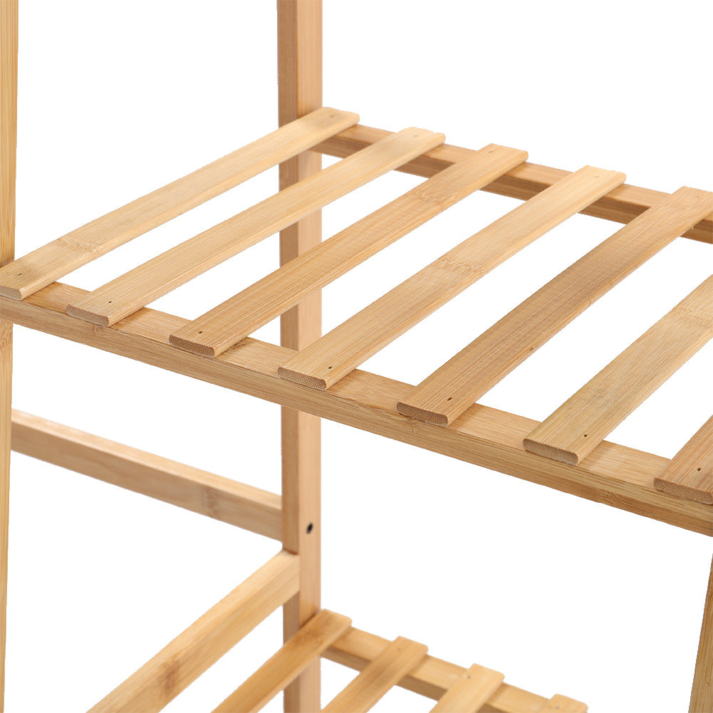 Made of natural bamboo, the trapezoid clothes rack is more durable, safe and environmentally friendly. This clothes display rack integrates the functions of a clothes rack and storage shelf. Multi-tiered storage shelves and hanging rods give you plenty of space to store seasonal clothes. The freestanding feature makes it a good solution to tidy up your messy room. With this perfect clothes rack, there is no need for you to worry about clothes messing up your room.
