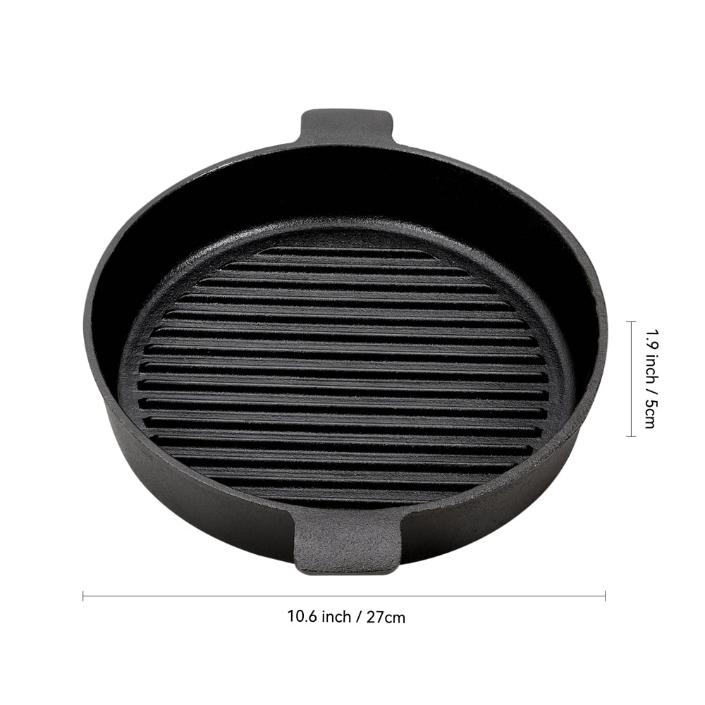 Enjoy barbecue-style cooking with our cast iron grill pan. Boasting quality cast iron construction, the pan is exceedingly durable, resilient and easy-to-clean. The even heat distribution ensures every inch of the ingredient is cooked to juicy tenderness, while the ridges leave behind those alluring grill marks. Quickly sear a fillet of salmon, locking in its natural oils and flavours, or whip up a batch of chargrilled vegetables for a healthy and satisfying meal.