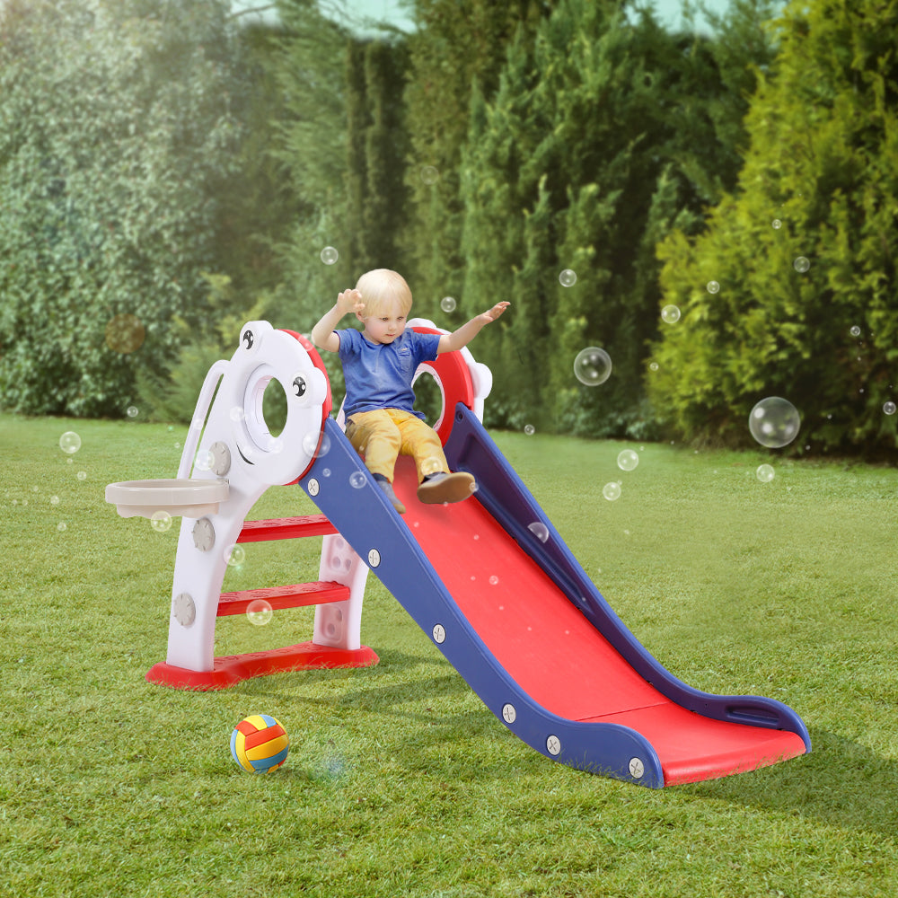 Watch your little adventurers explore and slide with the Blue and Red Folding Plastic Slide for Kids. This interactive plastic slide features a vivid fog design that delights toddlers while promoting imaginative play. The easy-to-climb steps and gentle slope provide a fun and safe sliding experience for your little ones. Made from durable and weather-resistant plastic, it can be enjoyed indoors or outdoors.