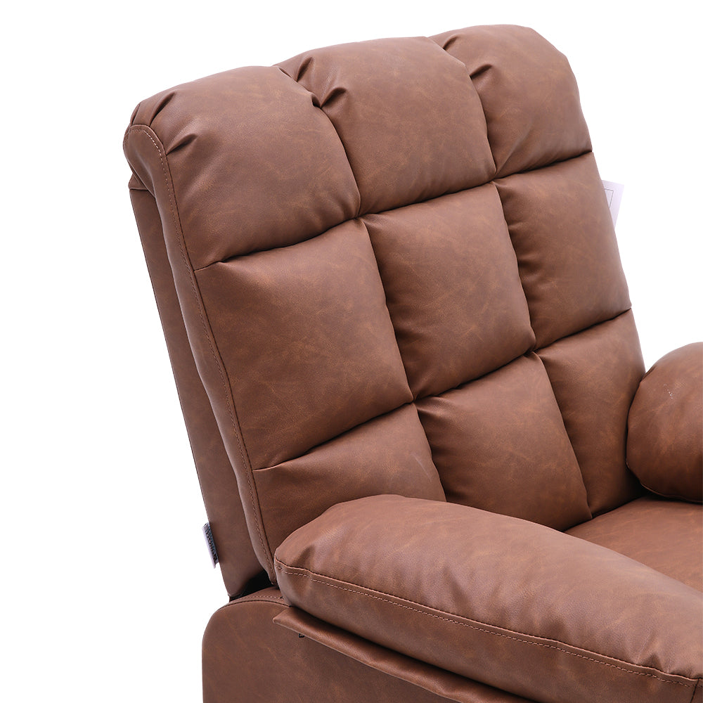 There is nothing quite like the feeling of sinking into the plush embrace of this recliner. Wrapped in smooth leather and cushioned with soft foam, it boasts a tall tufted backrest and wide armrests that promise relaxation in every posture, whether reclining or sitting upright. When weariness sets in, simply activate the control switch located under the armrest, and watch as the armchair seamlessly transforms into a recliner, replenishing your energy and alleviating stress. The matte leather upholstery exudes a touch of luxury and can be easily refreshed with a simple wipe using a damp cloth or specialized cleaner.