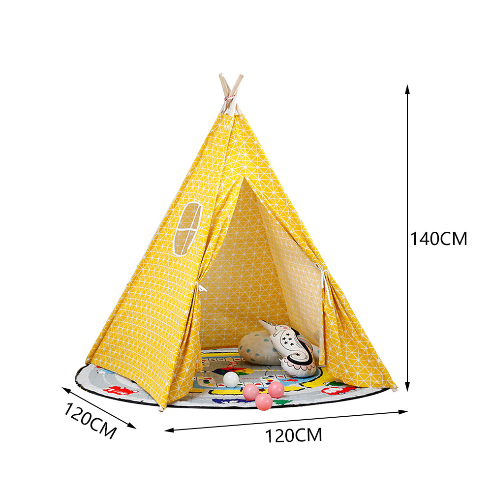 Our children Indian tent boasts robust fabric and is upheld by solid wooden poles with a sleek finish. Assembly takes just a few minutes, and once it's up, this expertly crafted teepee will create a personal paradise for your children. Its roomy interior accommodates a variety of activities, from reading to sleeping, ensuring hours of delightful fun. Designed to complement any home decor, this playful teepee is sure to become a beloved addition for both you and your kids.
