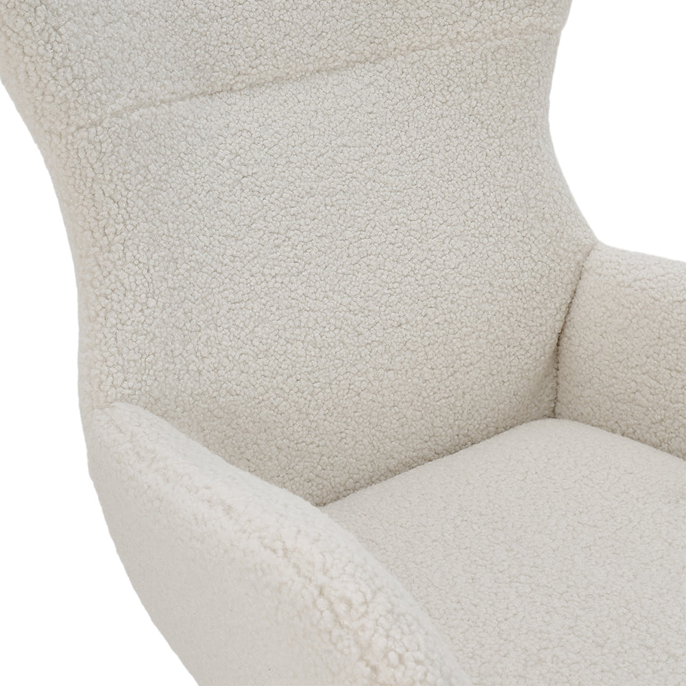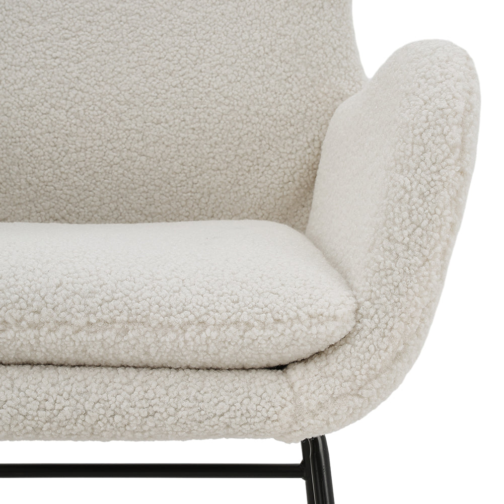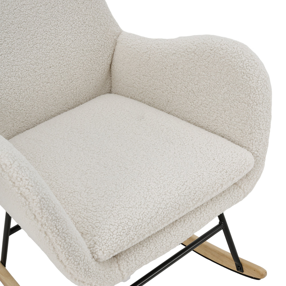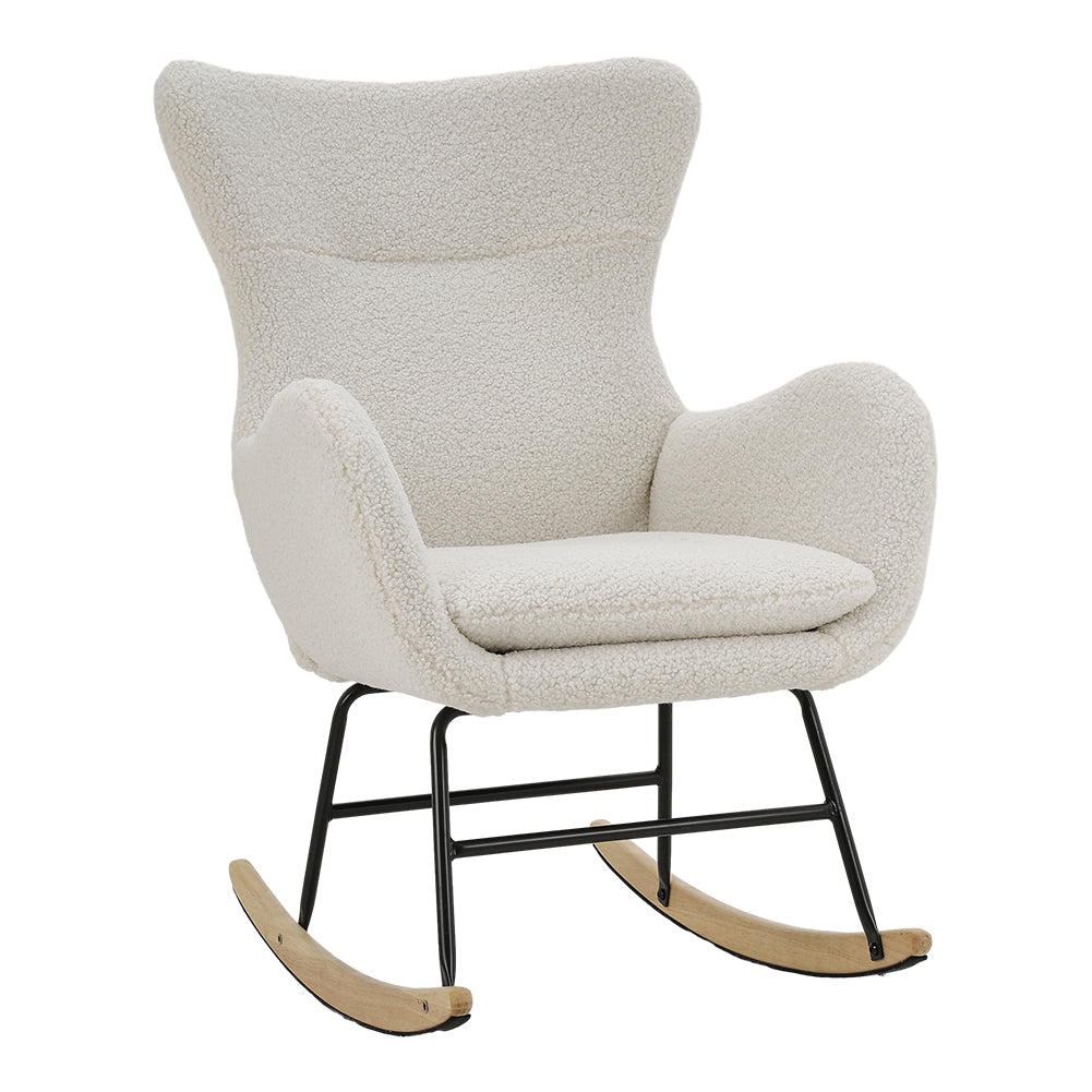 The comfy rocking chair invites you to lean back or gently rock after a tiring day. The soft sherpa upholstery provides you with immense comfort and aids in relaxation. The seats sit on top of two walnut rockers with a solid iron frame to make the seats sturdy. Based on the idea of the most comfortable rocking rhythm for the human body, the rubber-wood runners provide a soothing effect. This rocking chair caters not only to the elderly, who can sit and read the newspaper in the chair but also to mothers who can use it to lull their babies to sleep.