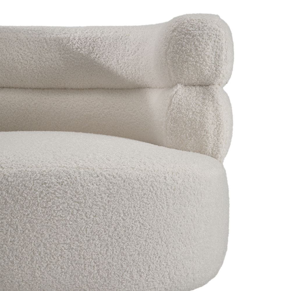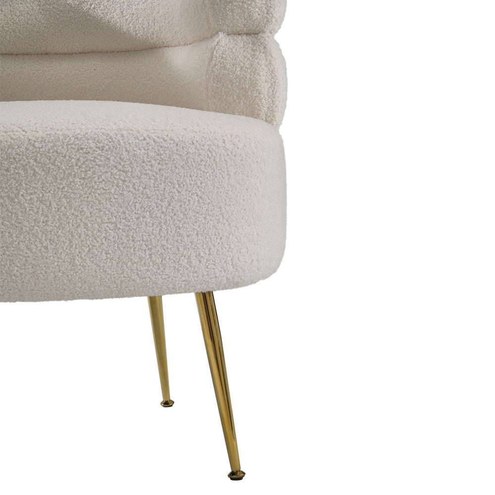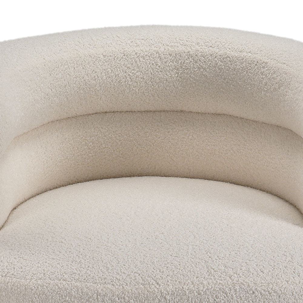 Give your space a designer look and feel with this eye-catching accent chair. Crafted with a solid and engineered wood frame, it features a curved silhouette with two semi-circle cylinders stacked on top of each other to form the arms as well as the back, and balances on four metal legs in gold finish. This teddy bear fur upholstered barrel chair is both comfortable and stylish, it really makes for a nice living room decoration.