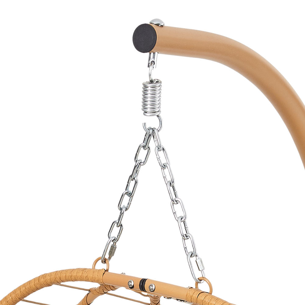 - Crafted with a powder-coated metal frame, this hanging chair offers superior strength, rust resistance, and longevity.