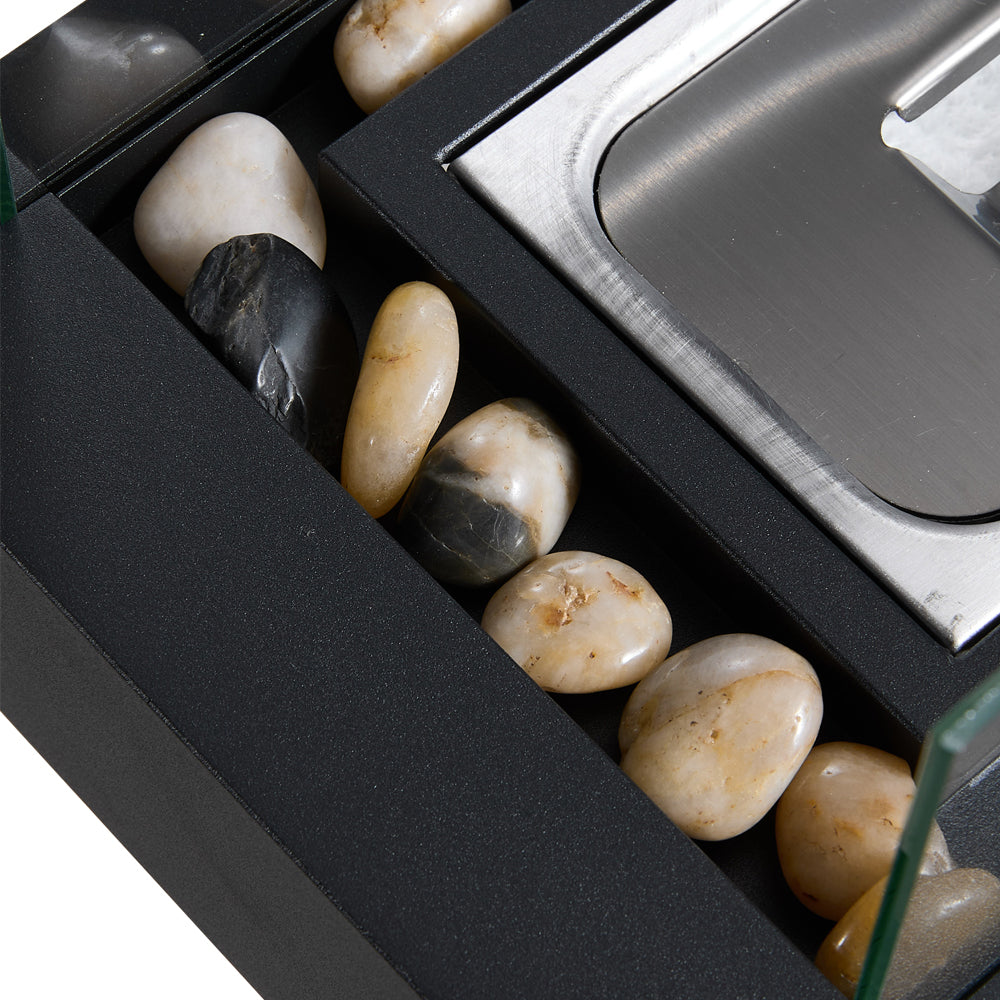 🧡💒🌠The matte metal base is finished with an automotive-grade paint finish, making it scratch-resistant, wear-resistant, and fingerprint-resistant. The interior is meticulously laid with natural riverbed pebbles, cleaned and polished multiple times to preserve their original texture while providing a soft touch. The cylindrical borosilicate glass shade features seamless construction, boasting a high light transmittance of 92%. A heat-resistant brass handle on the side allows for quick removal and candle replacement. The overall design retains the sleek lines of industrial design while infusing a dynamic touch with natural elements.
