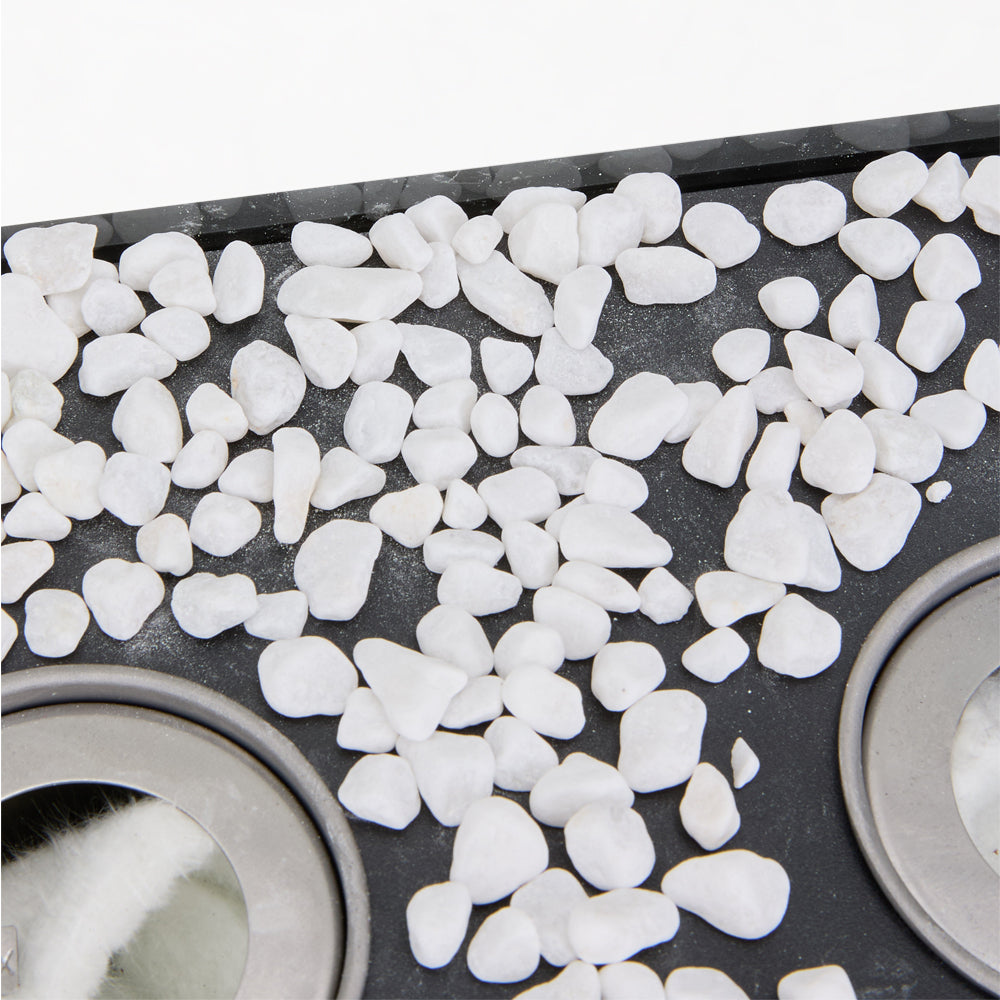 🧡💒🌠The decorative stones are carefully selected, with 3-5mm-sized moonstone and obsidian, each stone arranged in a three-dimensional pattern to create a gradient. When candlelight shines through the glass and across the stone surface, it creates a fine, star-like effect, creating a subtle contrast with the cool texture of the metal.