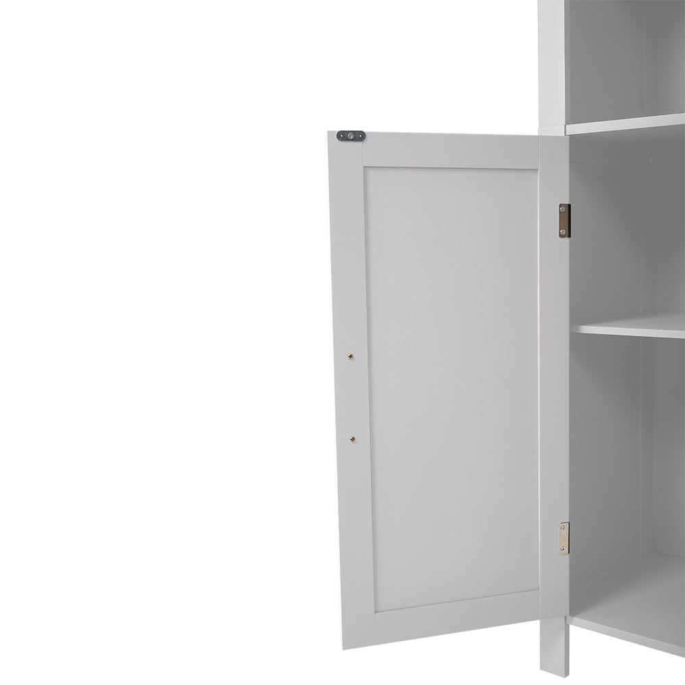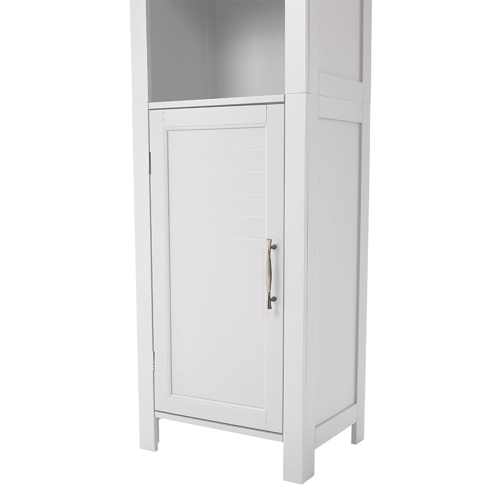 Want extra storage without crowding your bathroom? This tall, slim cabinet is the answer. It is narrow enough to stay out of the way while utilizing vertical space to provide ample storage. Coming with three open shelves and a cabinet, it offers a durable solution that will not wobble. With a clean, minimalist finish, this cabinet is perfect for your bathroom, laundry room, or next to your dressing table.