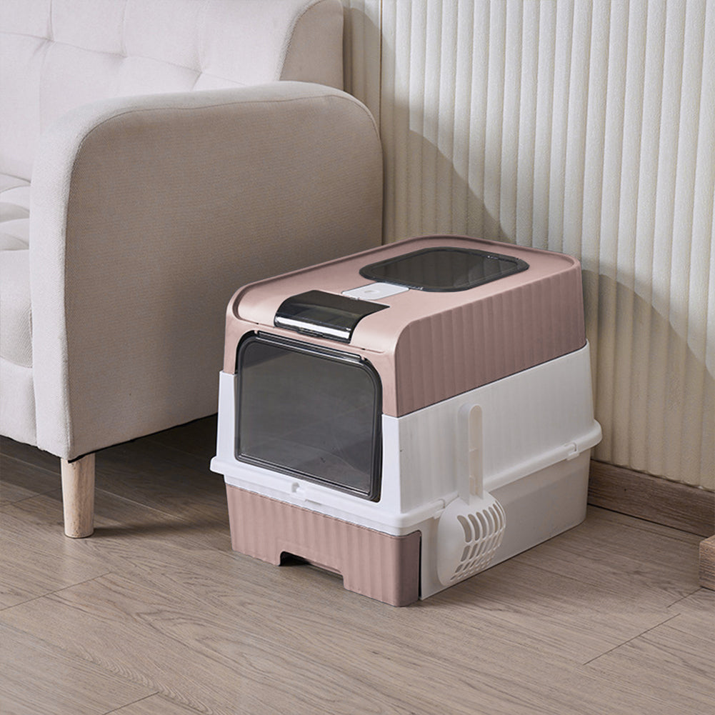 Tired of the constant litter mess and unpleasant odours? The ultraviolet sterilization cat litter box is exactly what you need! This innovative litter box features a spacious enclosed design to accommodate large kitties. It comes with a chargeable UV sterilization lamp with all-around illumination that effectively eliminates bacteria and germs, ensuring a clean and odour-free environment. To help with the cleanup, a scoop is included in the set.