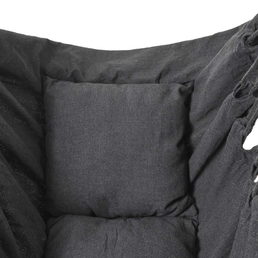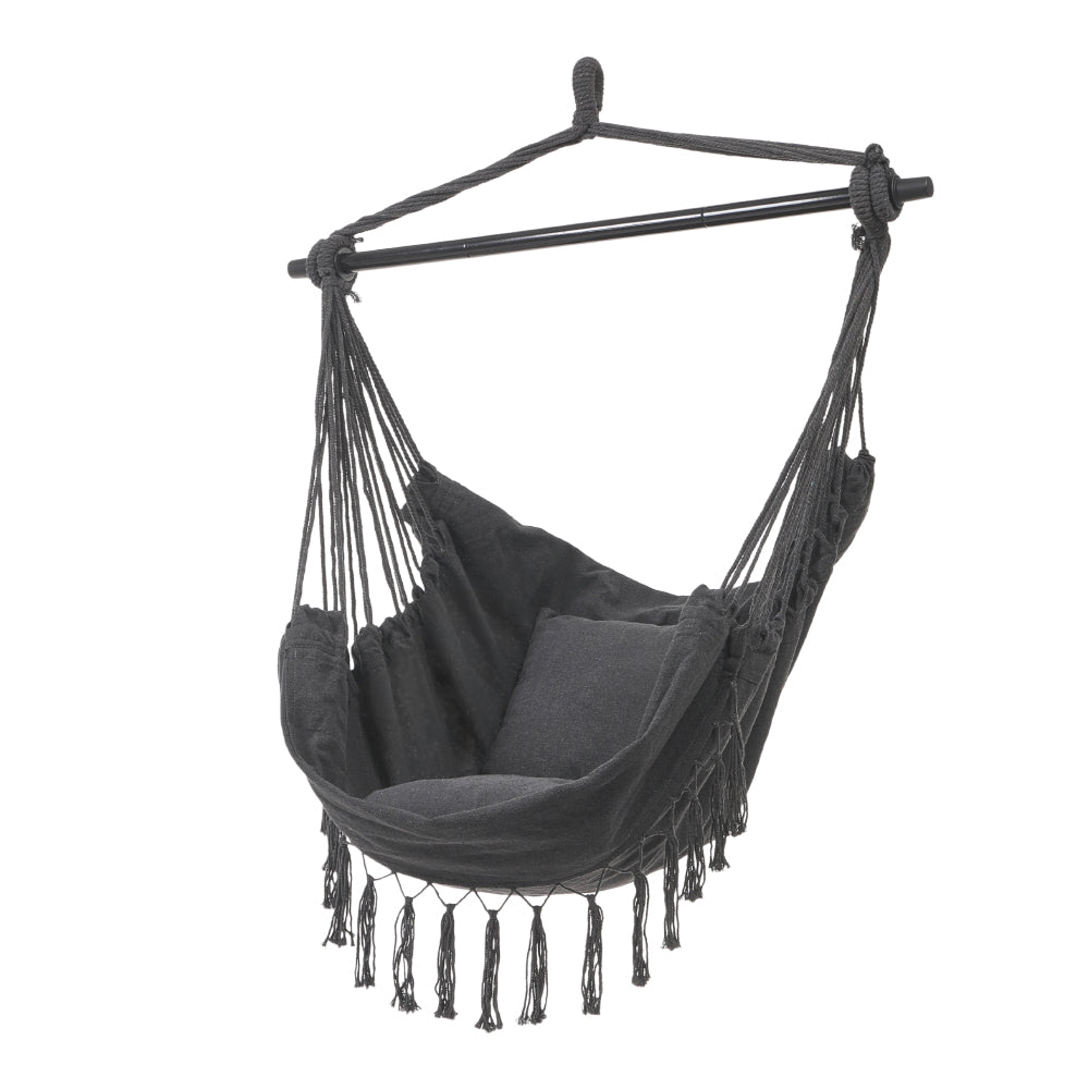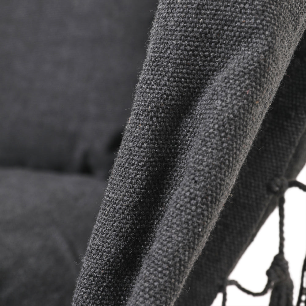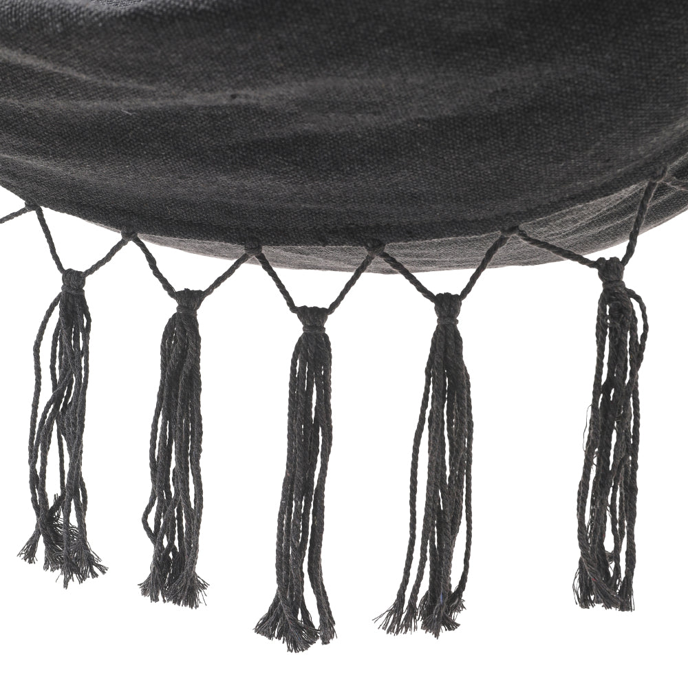 Enjoy a little me-time while sitting in this bohemian hanging chair. The spacious and well-padded seat allows you to swing away all your worries. Adorned with charming tassels, it adds a touch of elegance to your space. Adopting eco-friendly canvas, it is both durable and wear-resistant. It is supported by a sturdy metal pole and durable hemp ropes, plus the high-quality hardware, it offers a secure swinging experience. Easy assembly allows you to create an inviting outdoor retreat effortlessly.