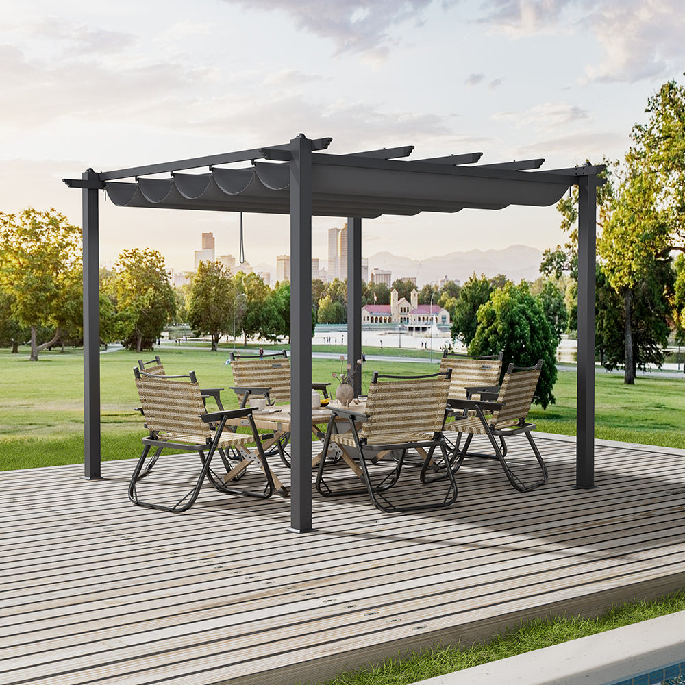 Hosting hearty backyard BBQs or dinner parties and transforming your space into an inviting haven become so much easier with this Garden Sanctuary Aluminum Patio Pergola. Crafted with a rust-resistant, powder-coated aluminum frame, the pergola boasts a reinforced structure to offer durability that can withstand the test of time. Comes with an UV-protected, windproof and watertight canopy, it provides optimal shade against the scorching sun. What is more, the canopy is retractable with a drawstring, allowing you to bask in the perfect summer ambiance.