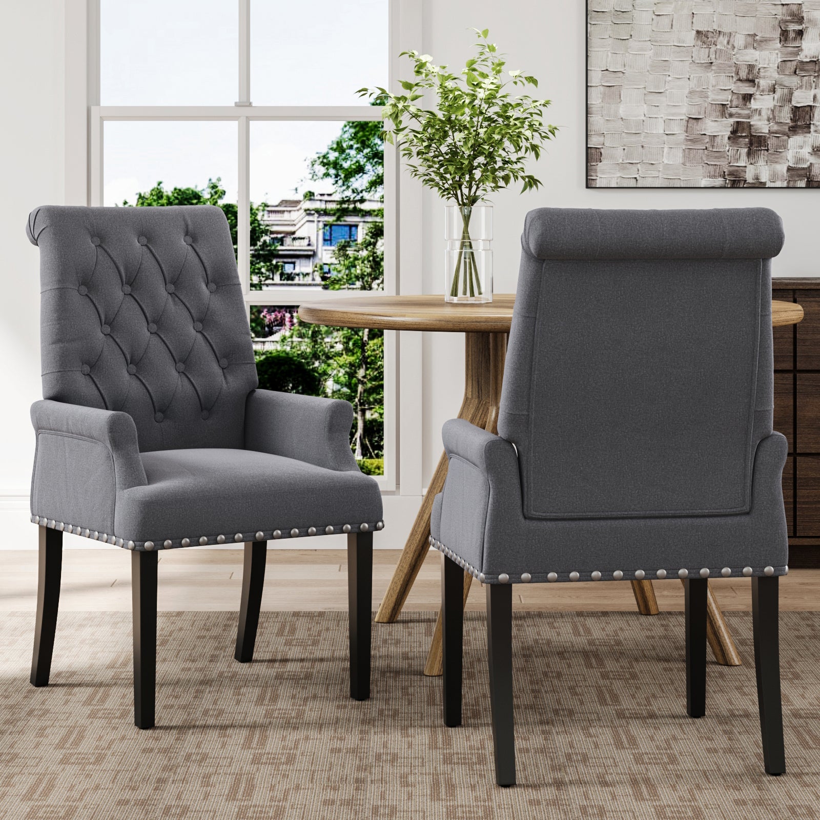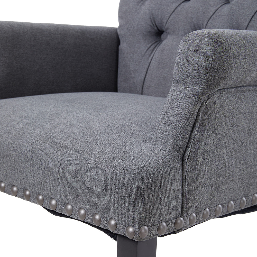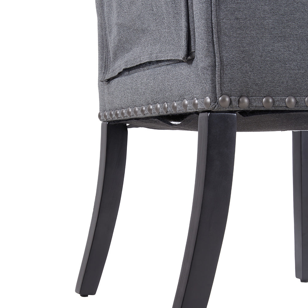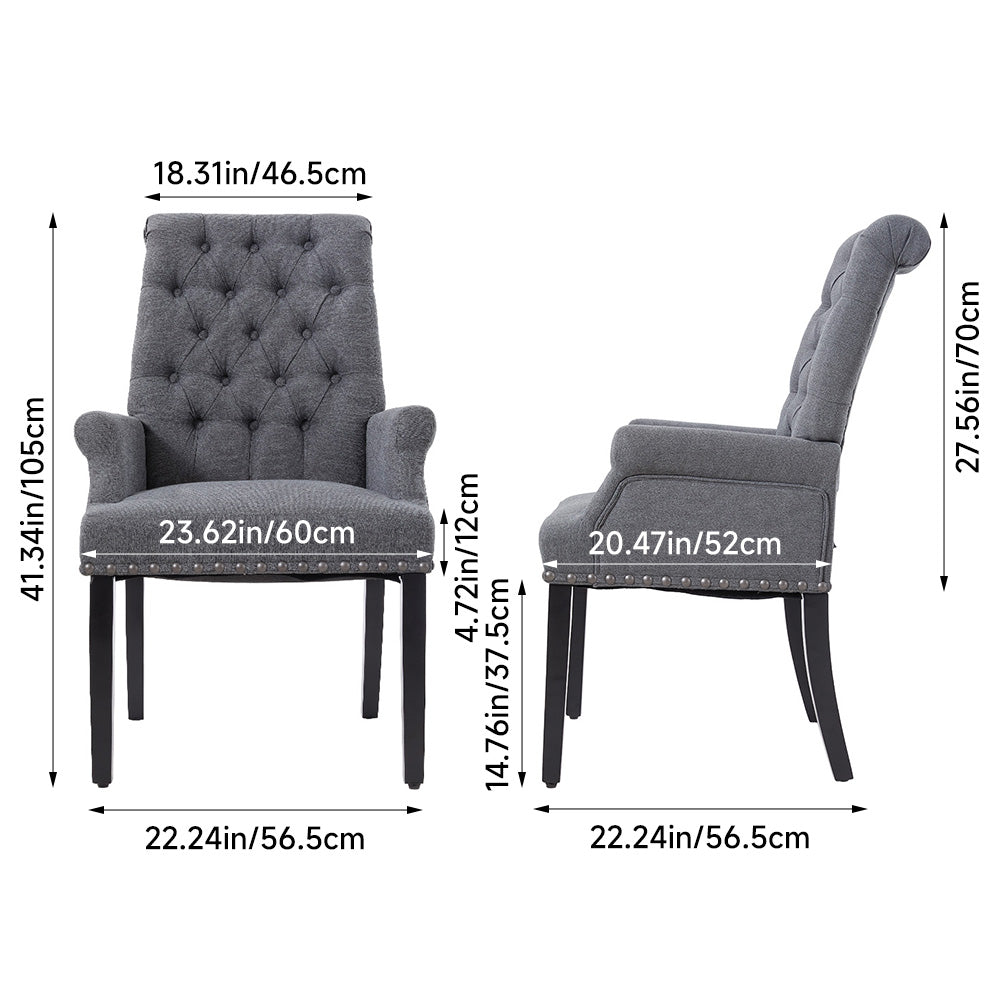 This greydining chair, with their comfortable and elegant design, brings a fresh experience to your dining pleasure. The perfect blend of modern and vintage styles is reflected in the pairing of the grey hue with black rubberwood legs, accented by delicate black copper nailhead, adding a touch of grace to your dining room. The height of the chair is meticulously designed to ensure comfort during meals, while the stable and sturdy construction guarantees safety. The decorative rhombus tufted backrest, combined with linen fabric, enhances the aesthetic appeal of the chairs.