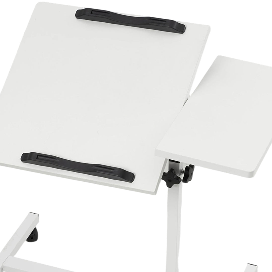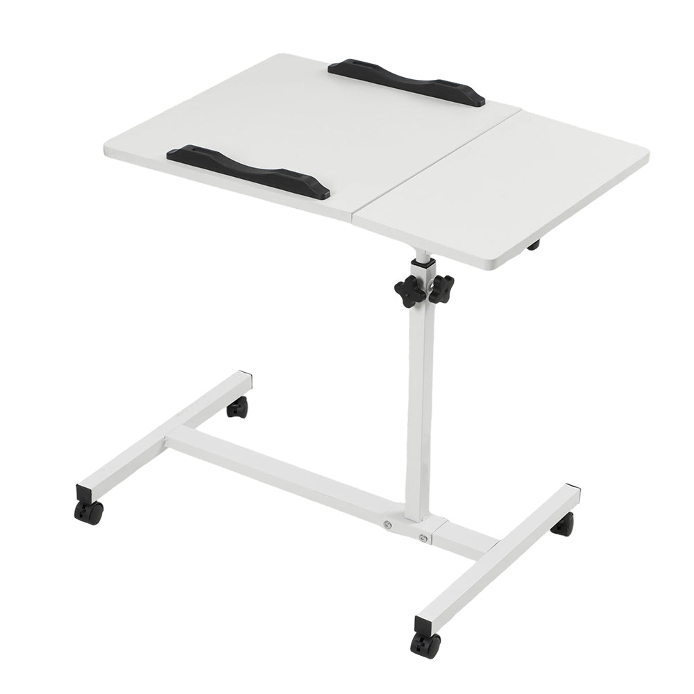 Upgrade your workspace with this computer desk, perfect for long hours of work or study. The clever dual-panel desktop lets you use one side as a stable laptop tray while keeping your mug or snacks on the other. Easily tilt one section to reduce neck and back strain while reading or working in bed. Adjust the height smoothly with a simple knob to suit anyone, whether they are sitting up or lying down—ideal for meals or study. Equipped with four smooth-rolling, lockable castors, you can effortlessly glide it exactly where you need it. It offers fantastic convenience for everyone, from students to those recovering at home.