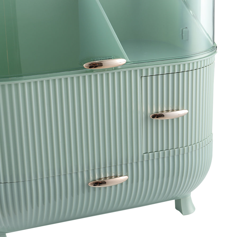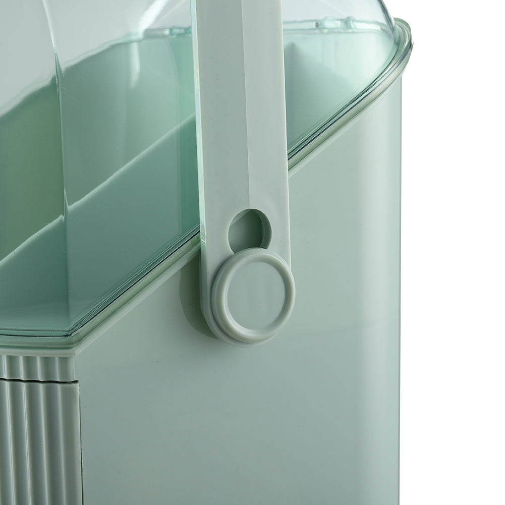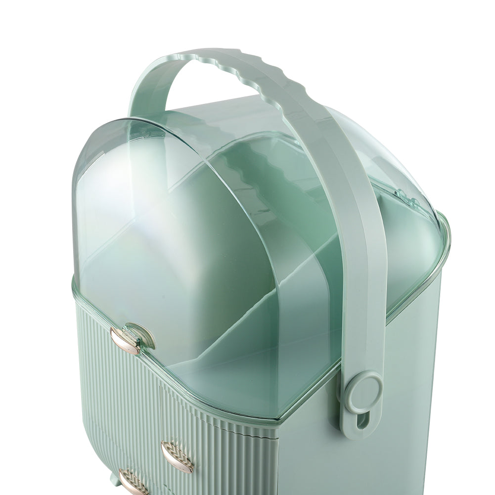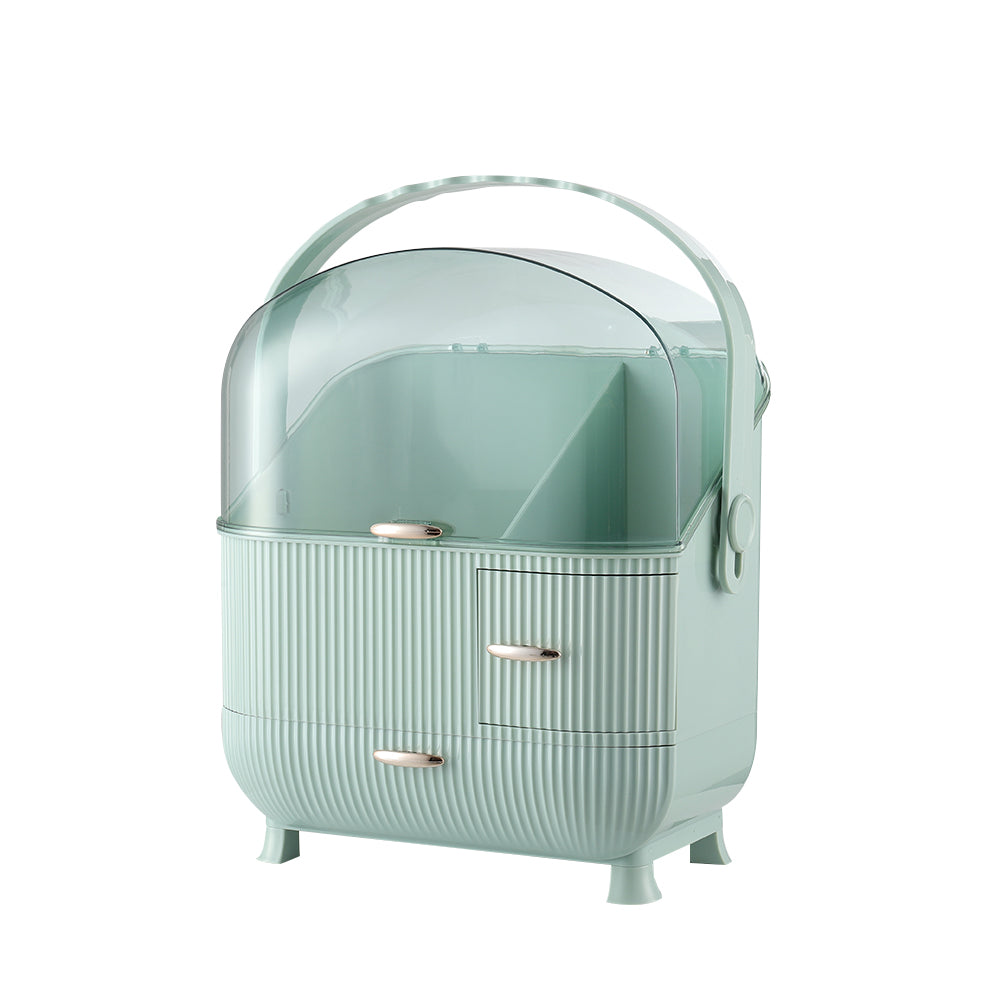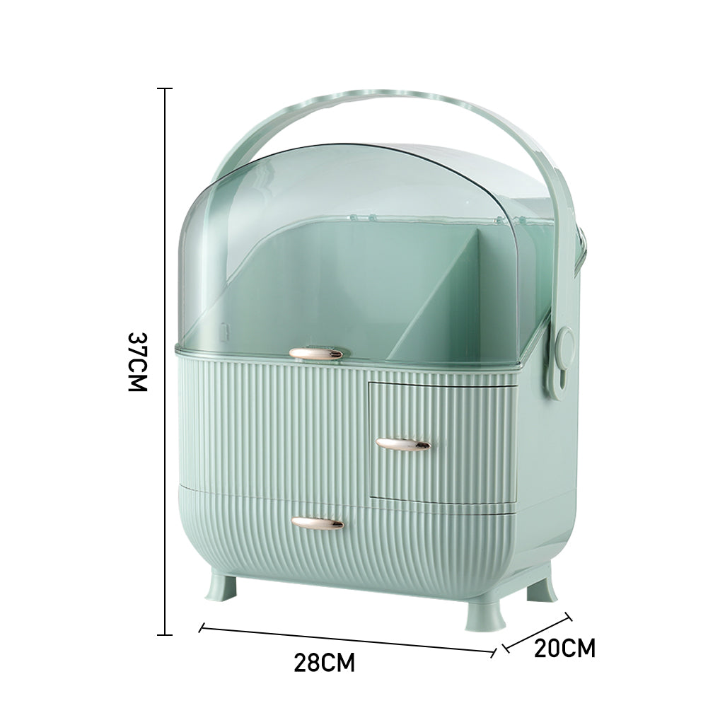 Made with high quality materials and designed with convenience in mind, this storage box is a must have for any makeup enthusiast. The box has three layers of different sizes, allowing you to sort and categorize your items according to your needs. The box features a convenient handle for easy carrying and transport, making it perfect for simply moving from room to room. The sleek and stylish design will look great on any vanity or dresser.