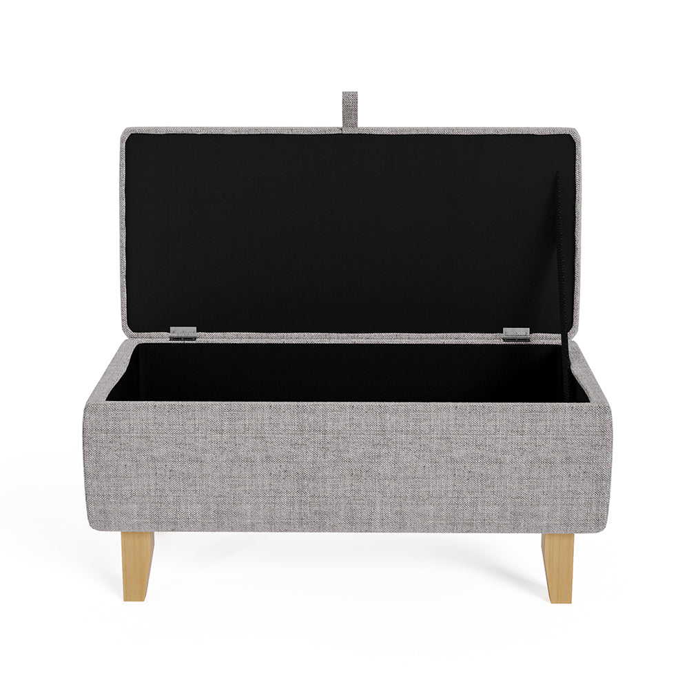 - The storage ottoman lifts easily up to reveal storage space, which is ideal for clothing, bed linen, and other household objects.