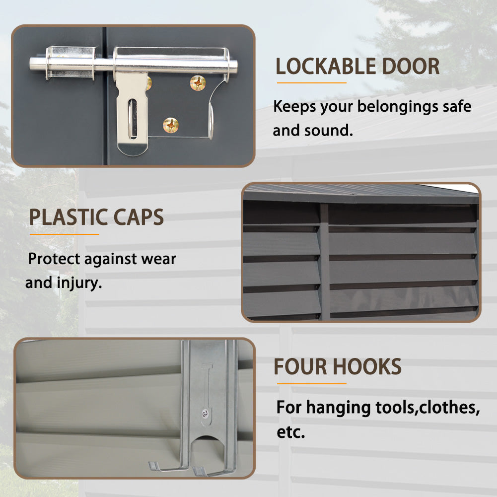 Keep your outdoor equipment and tools safe and organized with this durable steel storage shed. With a lean to roof that allows rain and snow to slide off easily, this shed is perfect for storing your lawnmower, garden tools, and more. The lockable door provides added security, while the steel construction ensures long-lasting durability. Assembly is easy and requires no special tools, so you can have your shed up and ready to use in no time.