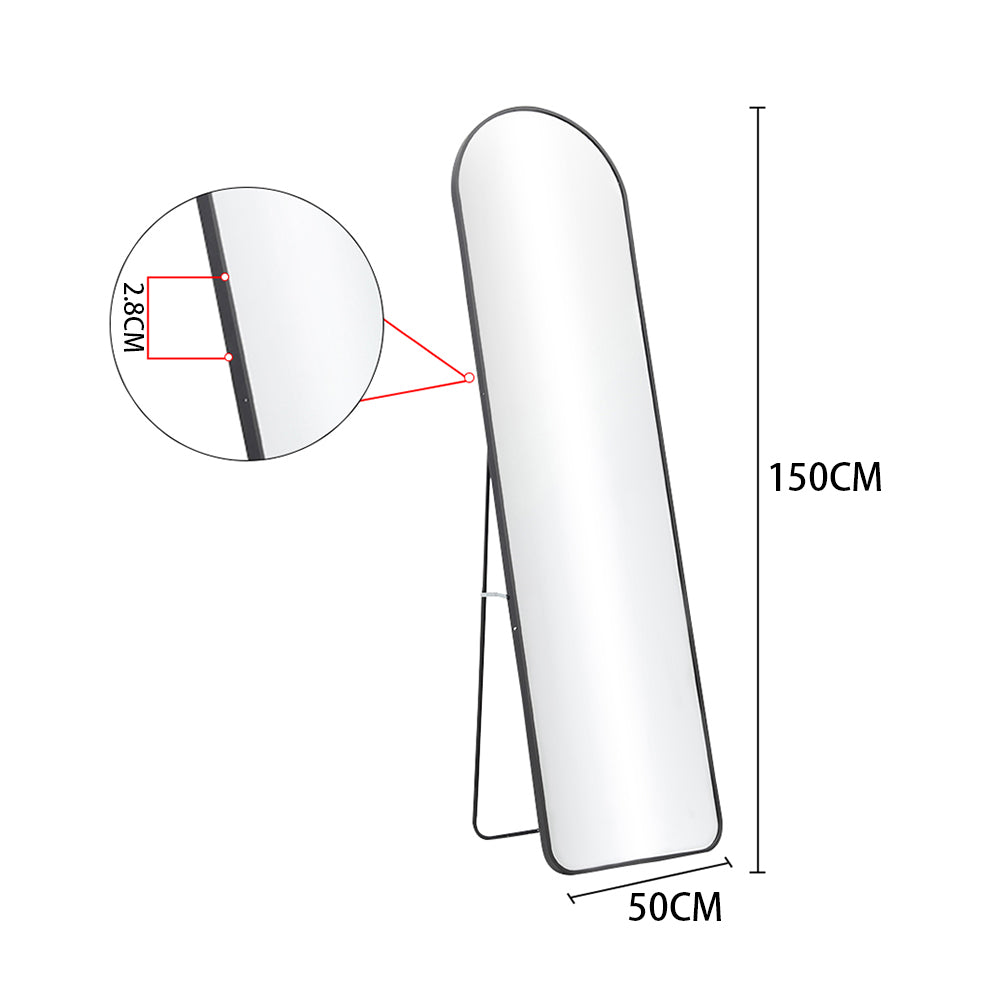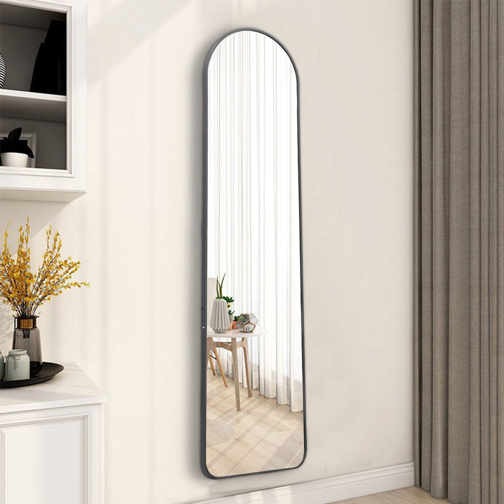 Our stunning floor mirror enhances the charm wherever it is settled. Crafted with meticulous attention to detail, this mirror combines a sleek, modern design with a classic arched shape to create a captivating focal point in any room. Its black metal frame adds a touch of sophistication and versatility, allowing it to seamlessly blend with various interior styles. Whether placed in the bedroom, living room, or hallway, this floor mirror exudes a sense of timeless beauty.