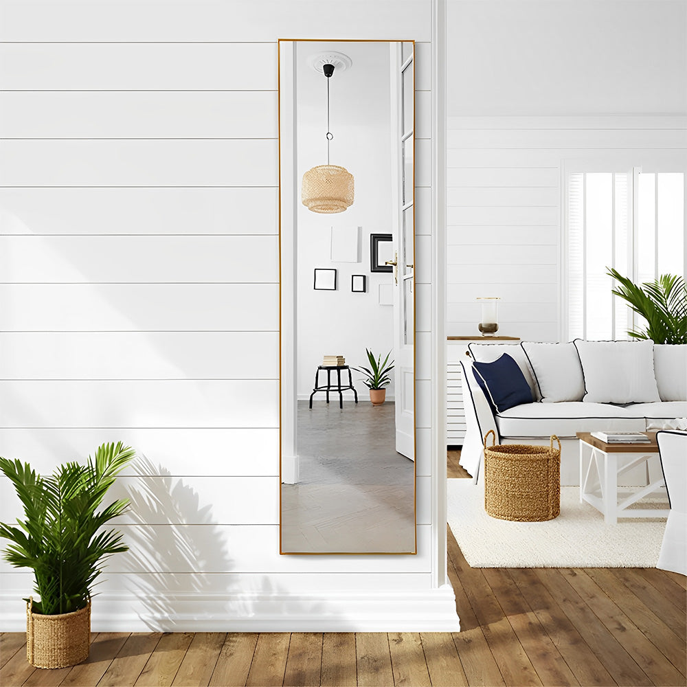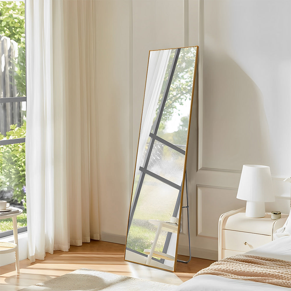 Get ready in style with the Livingandhome full length mirror, which is available in a range of finishes to suit your existing décor. The eye-catching silhouette and sleek frame add to its sophisticated appeal, and the versatile design allows it to be leaned against a wall, propped on a frame or wall-mounted to suit your space. Made from high-quality aluminum alloy material and shatter-proof glass to ensure that you can enjoy it for years to come.