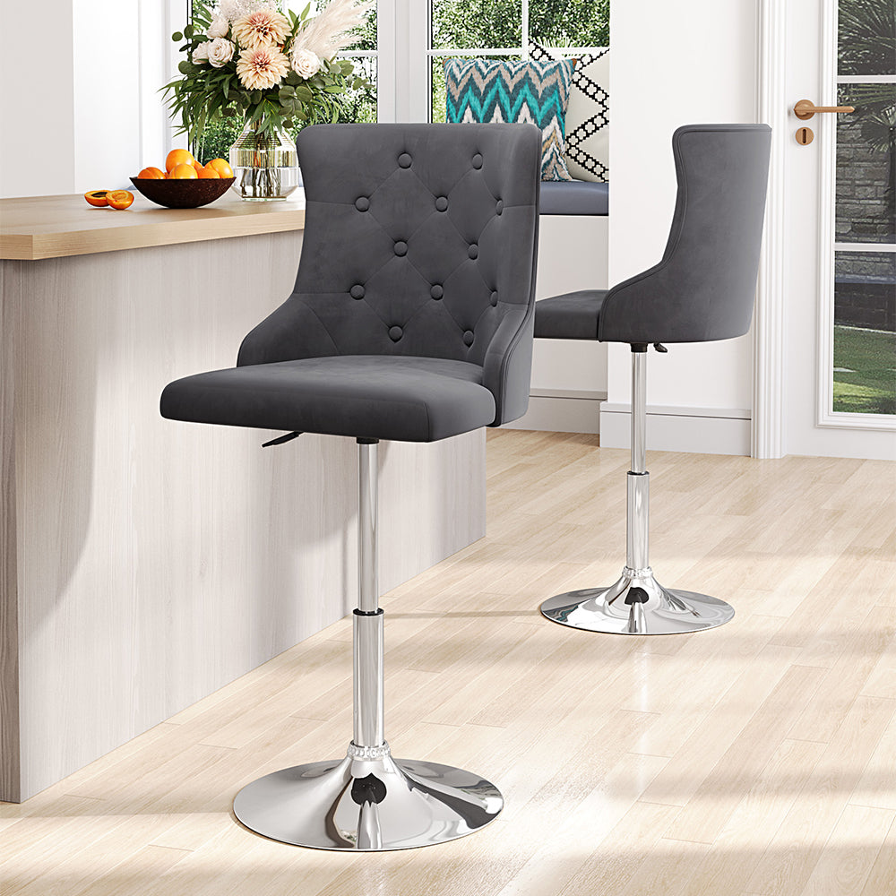 Our attractive bar stool is designed to grace your kitchen and other indoor settings. It proves that functionality and style can coexist. Featuring calming colours, the stools exudes a touch of vintage feel wherever it stands, plus the slick chrome pedestal, the chair looks so classy. Equipped with a gas lift, you can easily adjust the height of the chair and change directions.