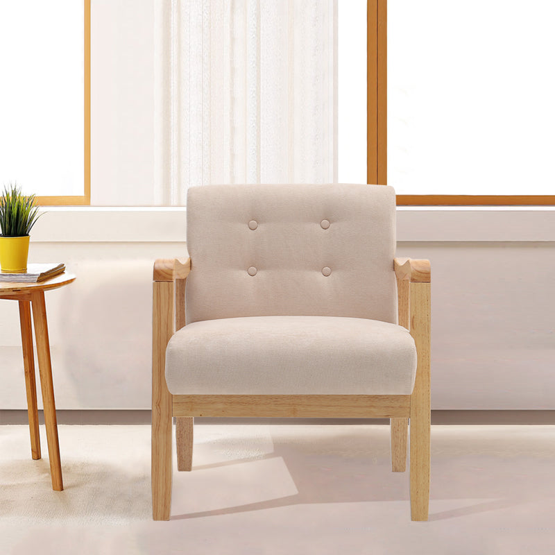 Anytime would be a good time to snuggle comfortably on our modern armchair! Clean lines and generous with space, regardless if you are going to read, play a game or just relax in it. With a scientific slanted design, you are unlikely to get tired from long-time seating. Besides, this armchair also has mild curved armrests for comfortable enjoyment. Moreover, the strong rubberwood frame makes this armchair built to last and the breathable fabric is used to adapt to all seasons.