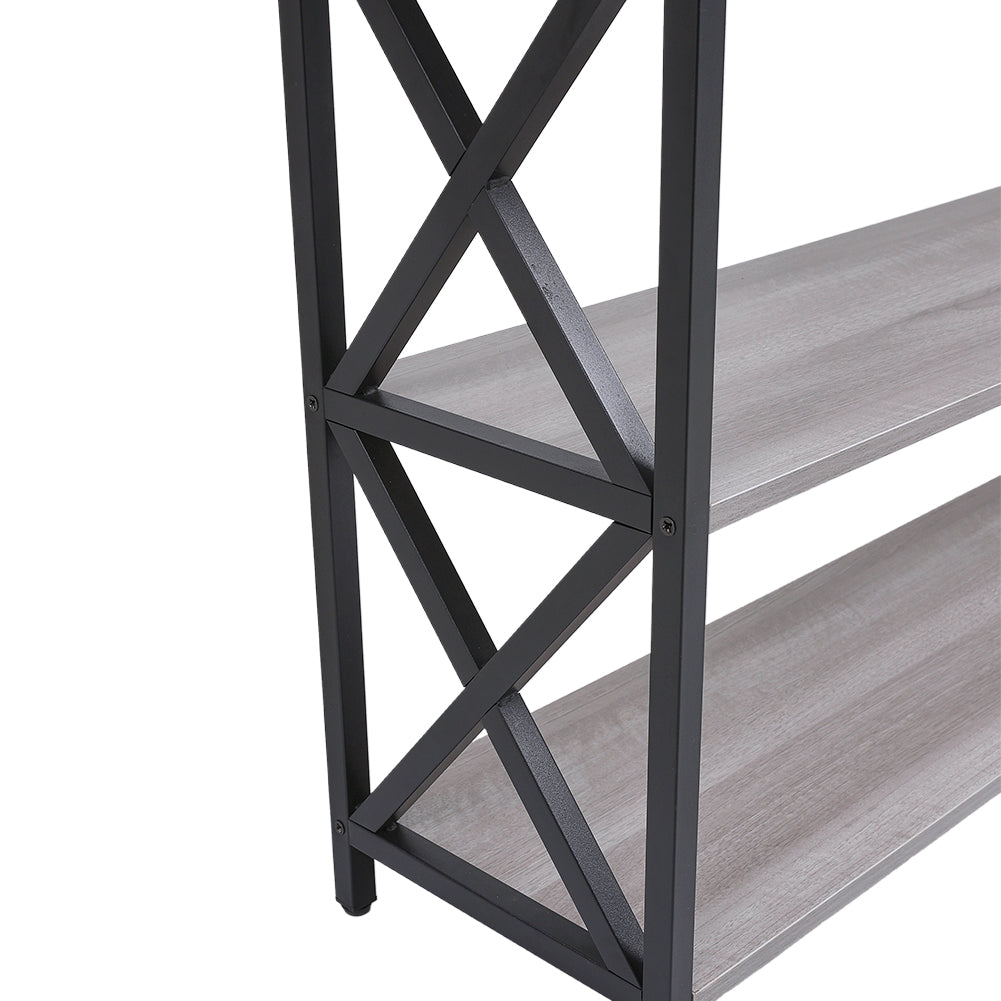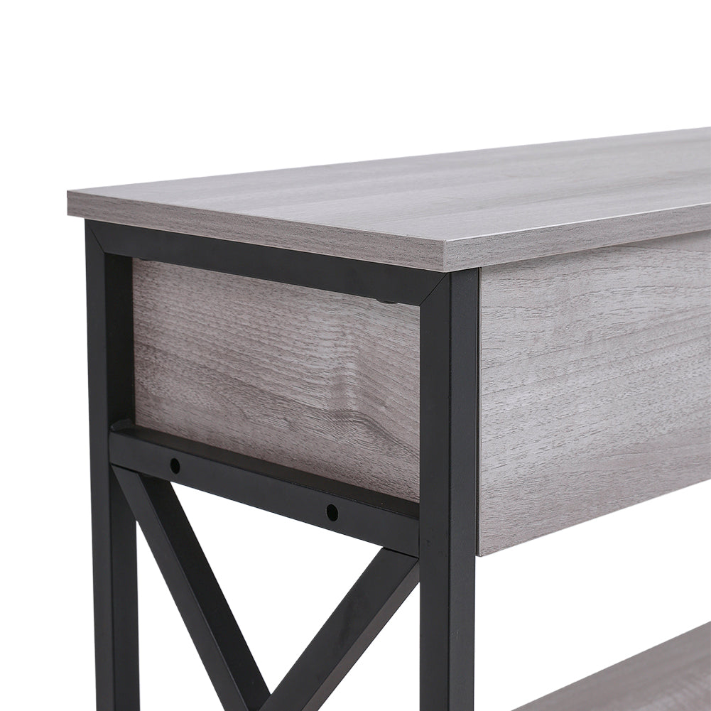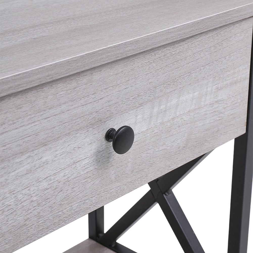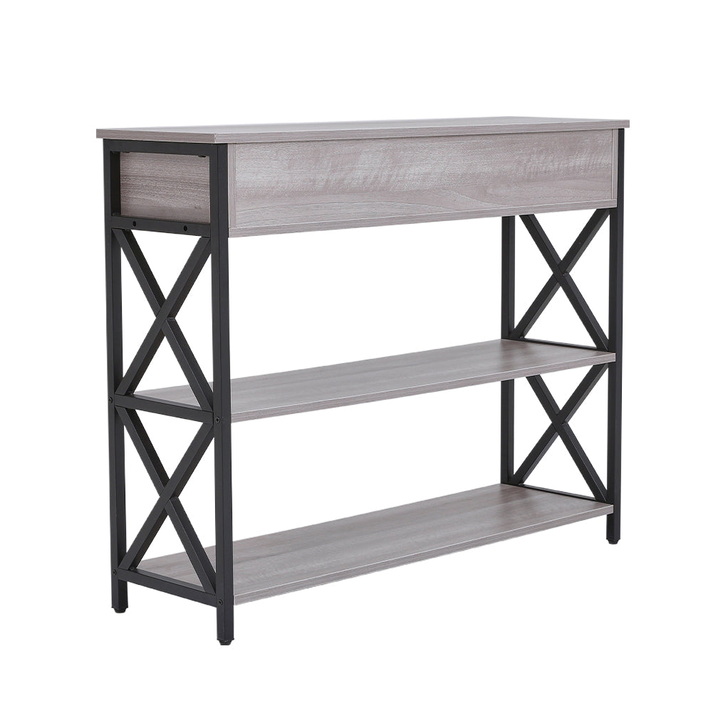 This console table will definitely make a centerpiece piece in any existing living space. Featuring 2 large drawers with round knobs, it provides handy storage space for your home supplies, while the 2 tiers of open shelves are perfect for putting shoes. On top of that, the spacious tabletop provides plenty of space for your books, drinks and other decorative items. Made of thickened particleboard and metal frames, the table promises long lasting durability.