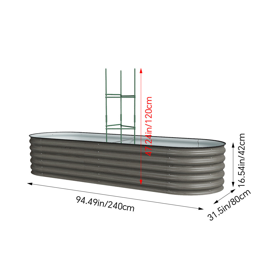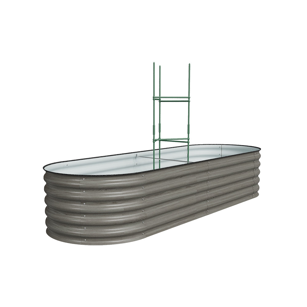 Elevate your garden with this stylish raised garden bed. Its modern and wavy design brings a contemporary touch to any outdoor space, offering both beauty and practicality. The generous oval structure provides ample room for a variety of flowers, herbs, or small vegetables, making it perfect for patios, balconies, or rooftop gardens. Equipped with a trellis, it encourages climbing plants, adding vertical interest and visual appeal. Sturdily built for any environment, it stands alone beautifully or complements existing garden features, infusing your yard with natural charm and aesthetic pleasure.