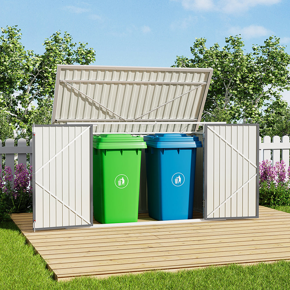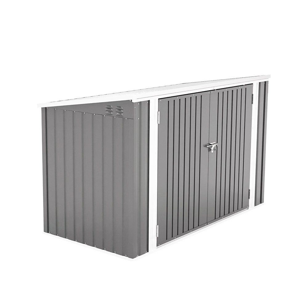 Keep your bikes organised and protected with our durable metal storage shed. Designed to accommodate multiple bikes, it ensures your valuable bikes stay safe from most weather conditions, freeing up indoor space. The clean, vertical panel design brings a modern touch, enhancing the aesthetic of any outdoor area. A pent roof efficiently directs rainwater away, preventing water or snow accumulation, thus extending its lifespan. With ample space, this shed comfortably stores mountain bikes, road bikes, and more, keeping them neatly arranged. Featuring a gas strut-assisted top lid and double outward-opening doors, it offers effortless access, eliminating the hassle of squeezing in or bending down. This shed provides a practical solution for cycling enthusiasts.