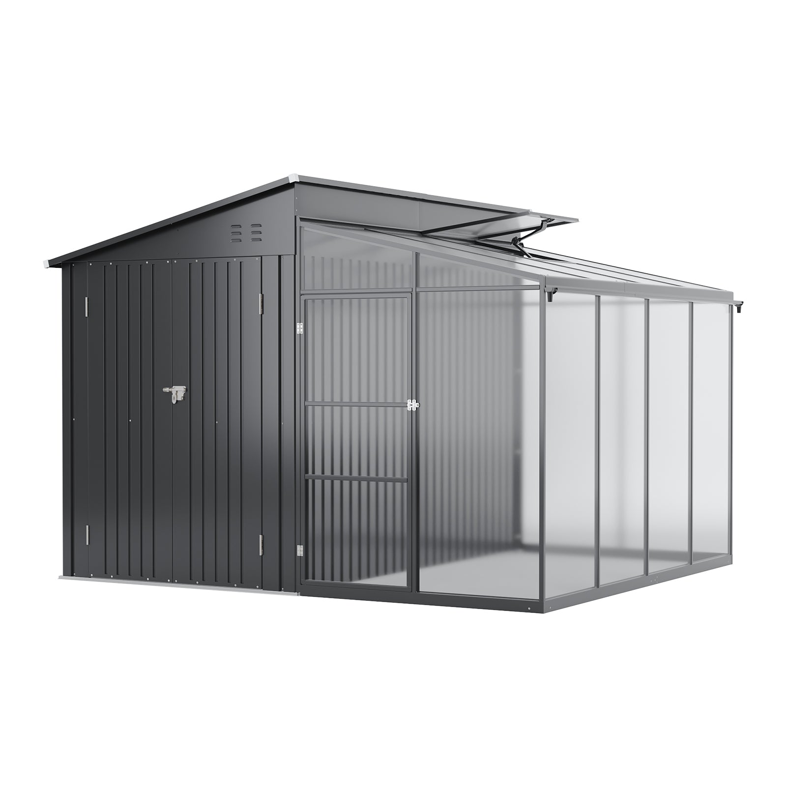 Weather-Resistant Construction: The tool shed uses corrosion-resistant zinc steel colorboard for long-lasting durability. The sunroom features UV-stable acrylic panels that maintain clarity and strength.