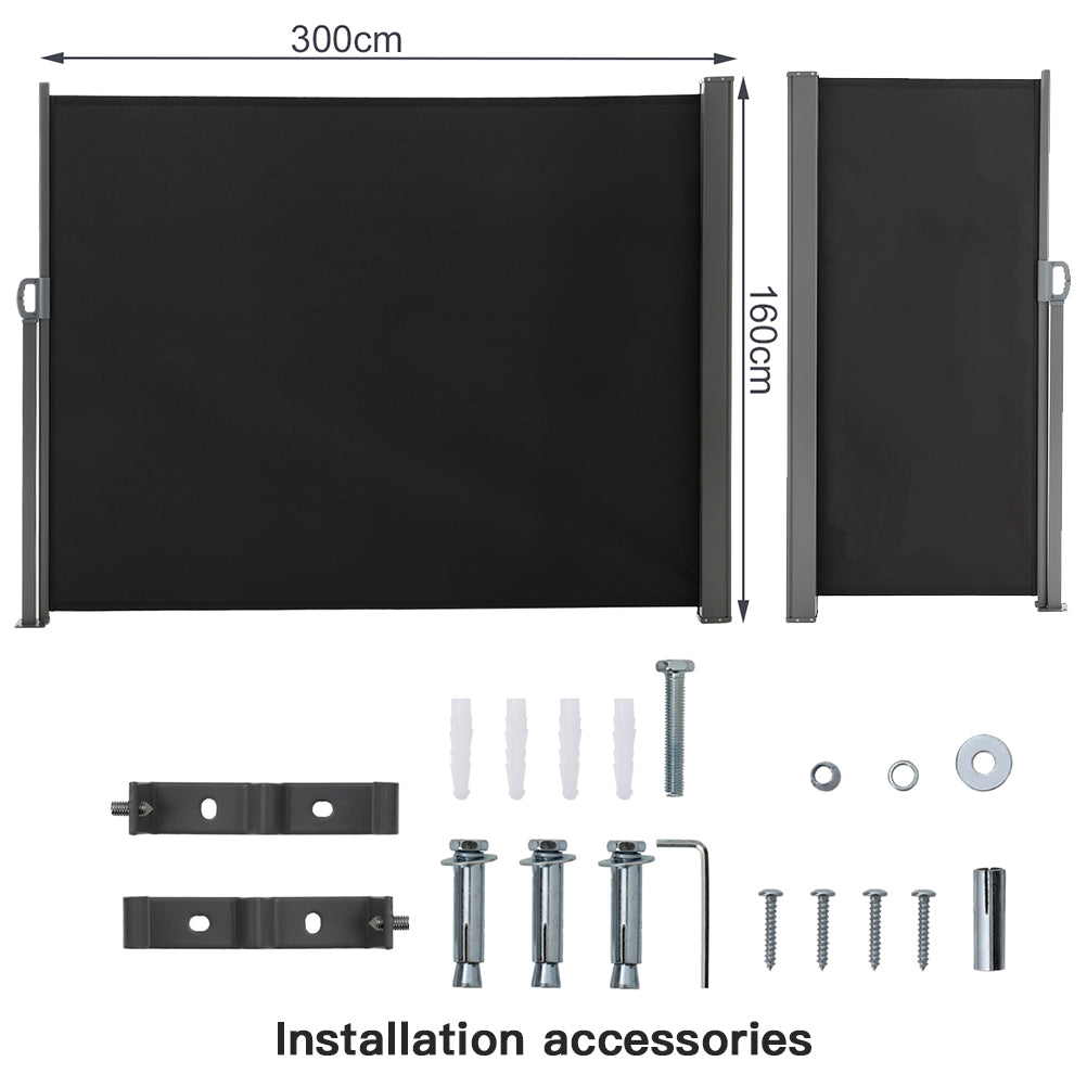 Creating a cool shade on your patio as well as protecting you from all those prying eyes? That’s what our professional side awning does. Rust-resistant frame, UV-resistant cover, this side awning promises you a long service life and a cozy afternoon. When there's a light breeze blowing or the sun shining down on your patio, you can pull out the awning and enjoy an undisturbed rest. The installation is quite simple too, the attached brackets ensure good stability.