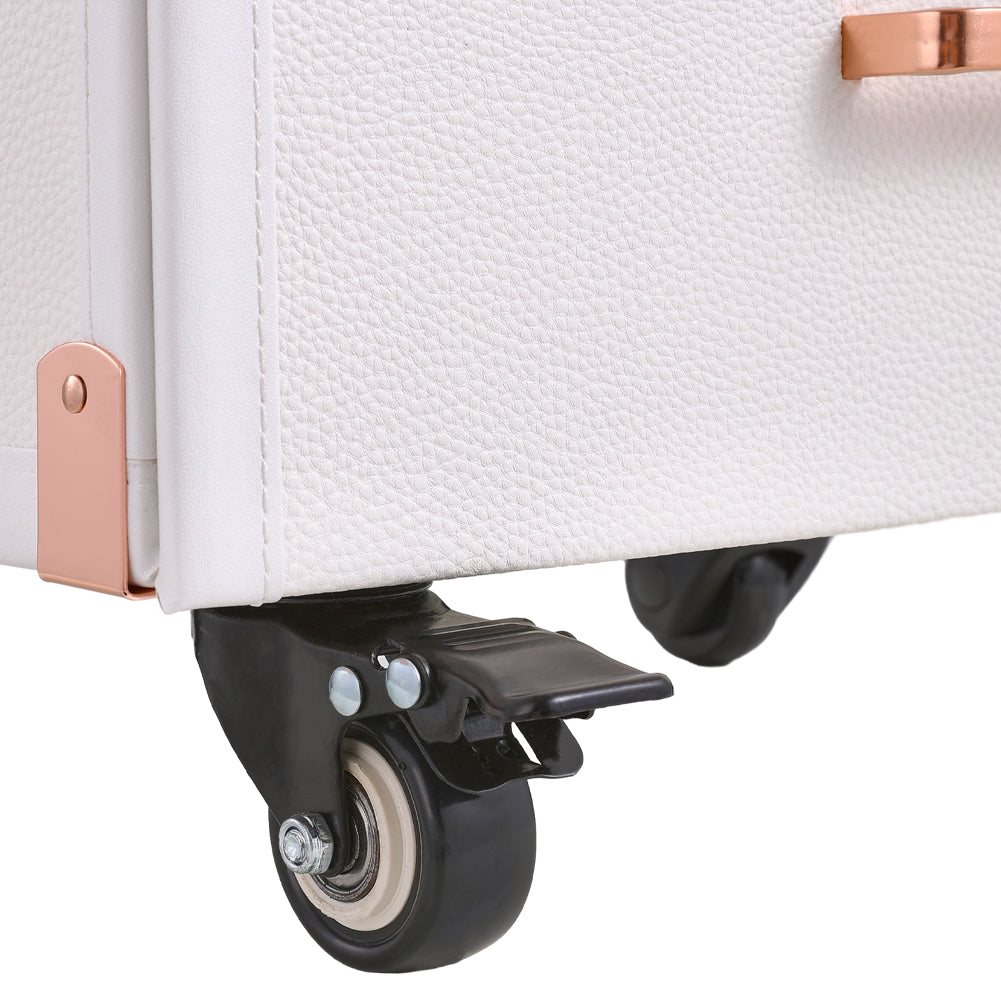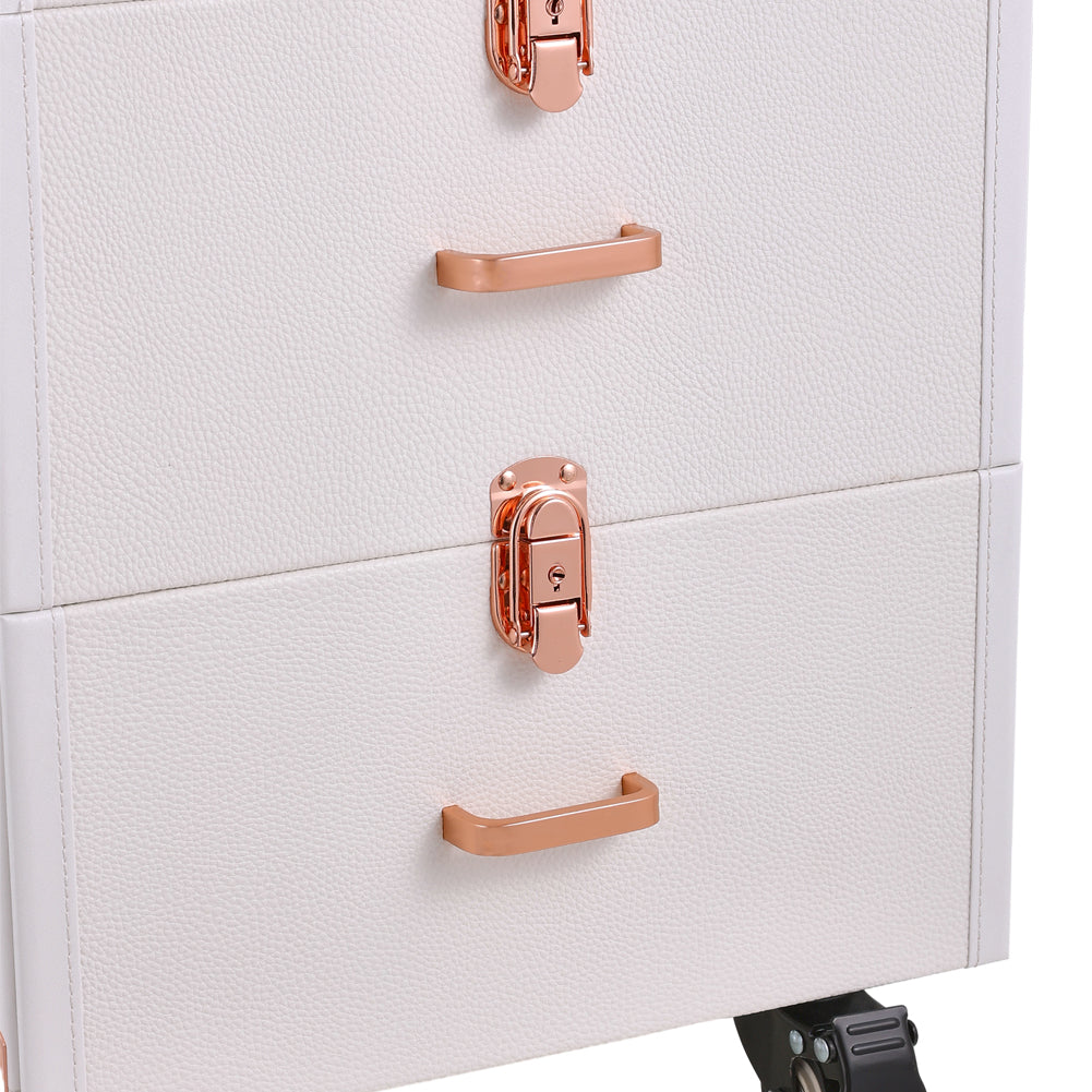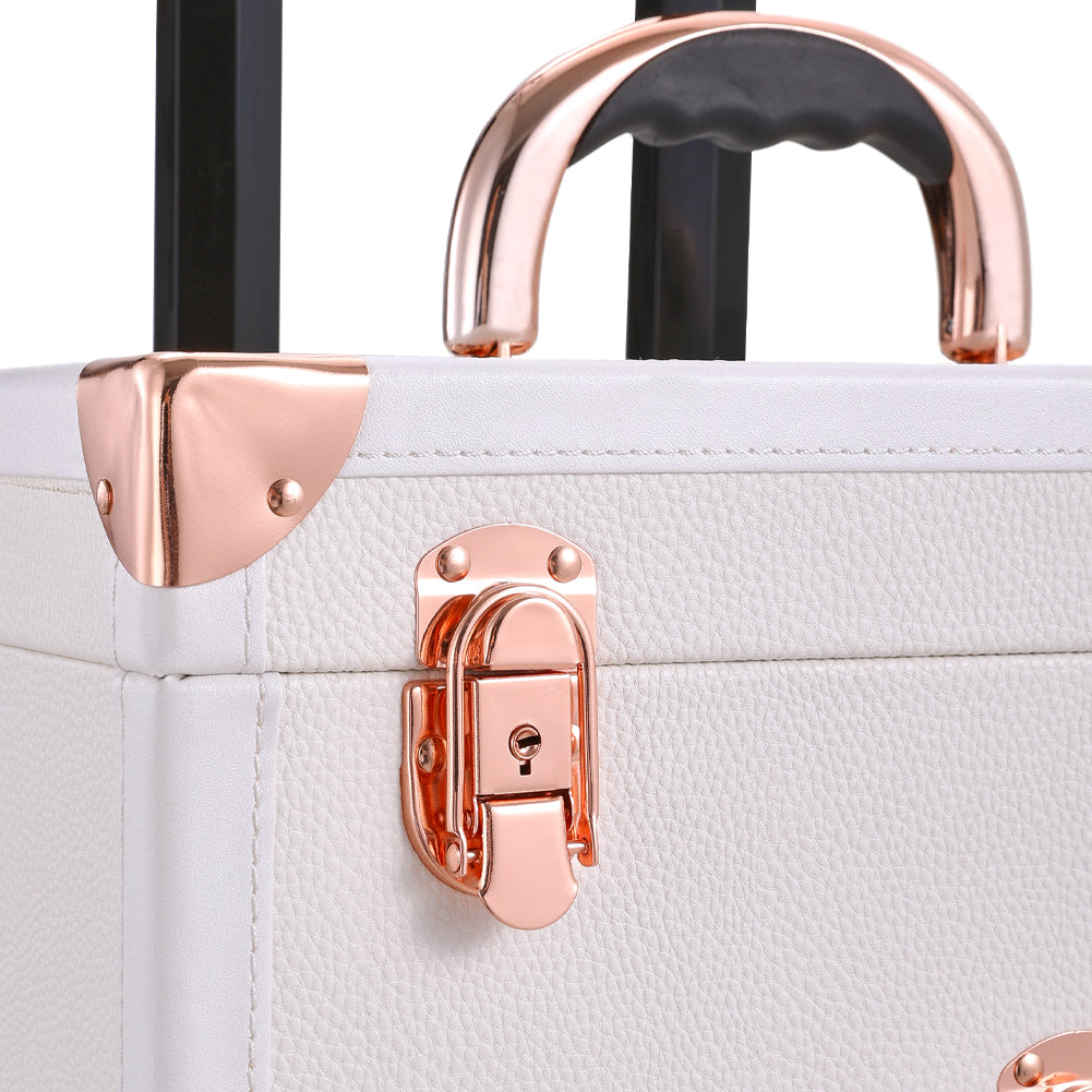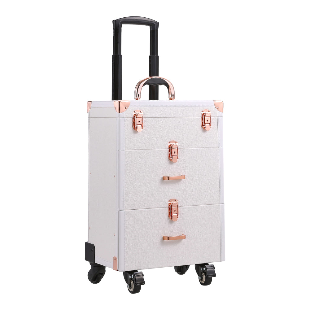 This 3-in-1 Cosmetic Trolley Case provides an organized, safe and portable solution for professional makeup artists and cosmetologists. A transparent zipper cosmetic bag is attached to the lid, allowing you to store a variety of beauty brushes for easy access. The first layer features dedicated slots that enable you to neatly store your nail products or lipsticks. The bottom two drawers can hold a variety of cosmetics and larger beauty tools. All-directional rolling wheels and a telescoping handle make this trolley makeup case convenient to carry around. Whether it is in a beauty salon, studio or mobile place, we believe that you can efficiently carry out makeup work with it!