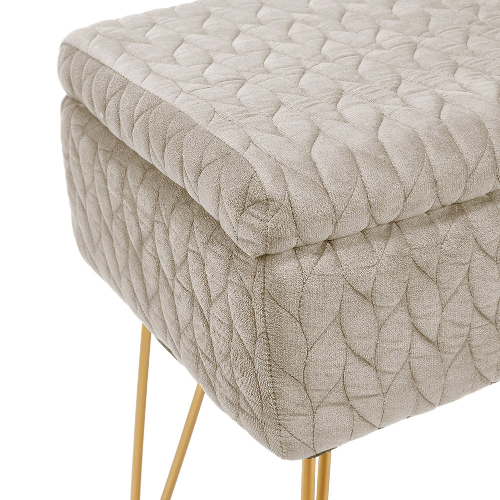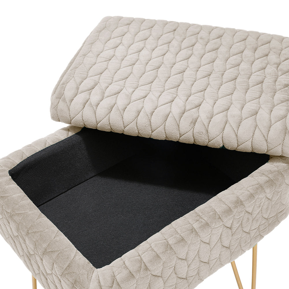 This versatile vanity stool by Livingandhome gives you a spot to sit while it can be used as a storage stool for storing your stuff. The wooden lid top and durable metal legs make this accent ottoman perfect as a serving tray or tray-top coffee table, holding drinks and snacks. What is more, the top of this ottoman lifts up to reveal a hidden storage compartment that is perfect for blankets or other clutter.